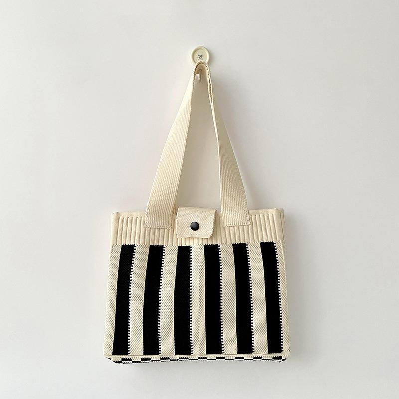 Маленькая дизайнерская черно-белая вертикальная полосатая сумка, вязаная сумка через плечо, студенческая сумка-тоут