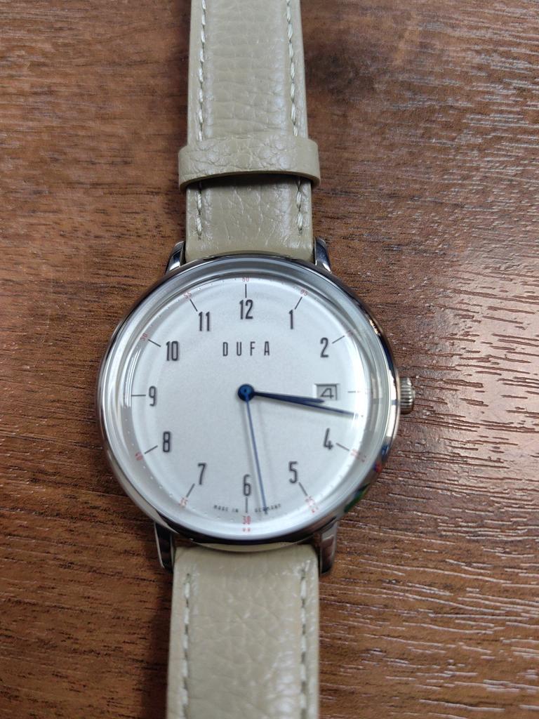 Часы имеют теплый бежевый циферблат с текстурированной отделкой, дополненный люминесцентными стрелками и простыми часовыми метками, обеспечивающими отличную читаемость.. Его минималистичная эстетика излучает сдержанную роскошь, подходящую как для формальной, так и для повседневной обстановки.