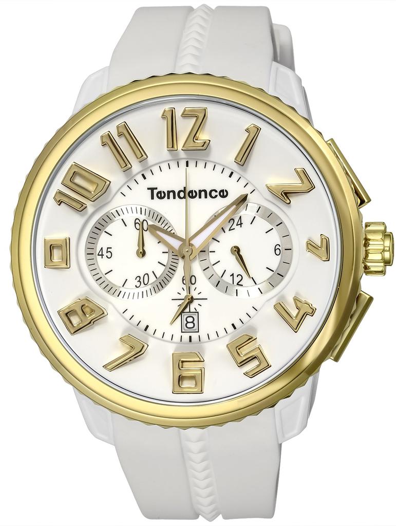 Этот хронограф Tendence Gulliver излучает современность благодаря своему смелому, большому корпусу и элегантному белому циферблату.. Его современный дизайн идеально подходит для тех, кто хочет надежный, но модный аксессуар, и заявляет об уверенности и стиле.
