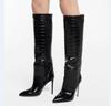 Krazing Pot Осенне-зимняя обувь из микрофибры на очень высоком каблуке, большой размер 46, для ночного клуба, женские, сохраняющие тепло, с узорами из камня, сапоги до колена