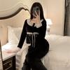Пижама с длинными рукавами, домашняя одежда для женщин, осень-зима, с плюшевой кружевной отделкой, сексуальная ночная рубашка, квадратный вырез, комплект домашней одежды