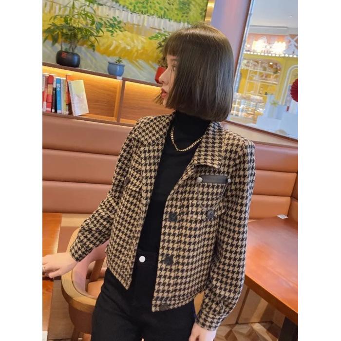 МОДНОЕ короткое пальто женское 2024 зима новый маленький мужской универсальный тысяча птиц сетка маленький ароматный куртка иностранный повседневный топ — купить товар онлайн с бесплатной доставкой до всему миру!