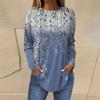 Женская свободная футболка с длинным рукавом с круглым вырезом и принтом, верхний пуловер
