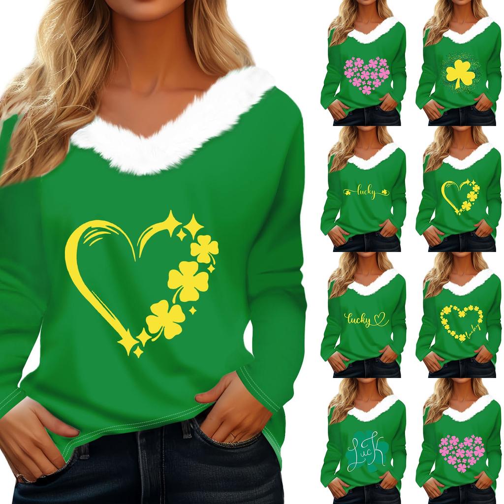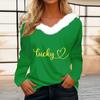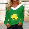 Женская футболка St. Рубашка с принтом Патрика, длинный рукав, праздничная атмосфера, флисовый воротник, топ с V-образным вырезом