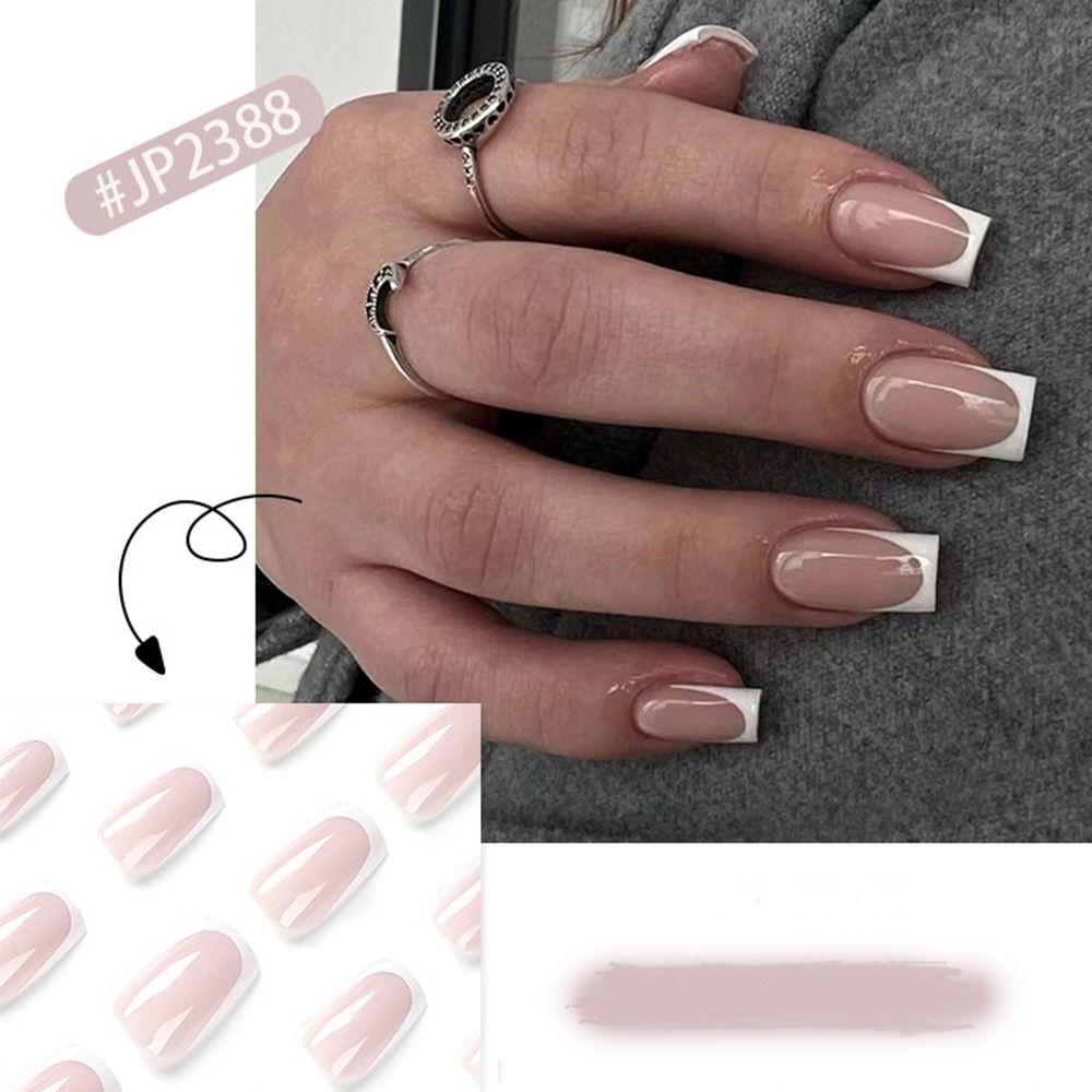 24 шт. Съемные DIY Накладные ногти Накладные ногти Длинные квадратные Накладные ногти Французский белый край