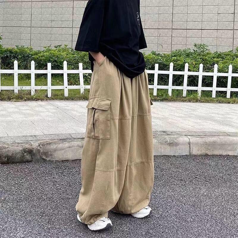 Harajuku Streetwear Khaki Cargo Брюки женские Oversize Карманы Хип-хоп Черные Широкие Брюки Для Женщин Корейский