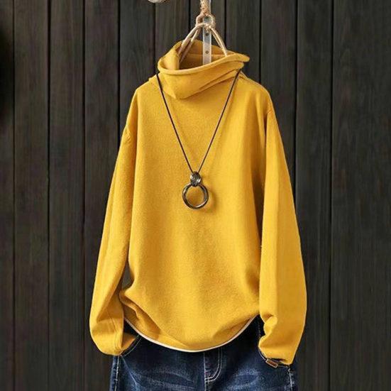 Осень-зима Женские футболки с воротником-стойкой, однотонные, мягкие, удобные, с длинным рукавом, пуловеры — купить товар онлайн с бесплатной доставкой до всему миру!