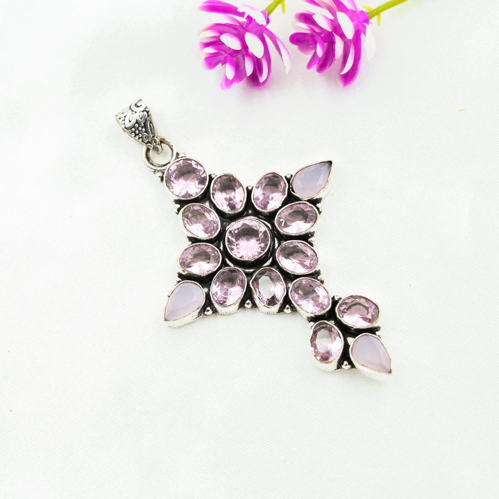 Розовый кунцит, розовый халцедон кулон, 925 цельное серебро кулон ручной работы драгоценные камни ювелирные изделия, подарки для жены абсолютно новый кулон