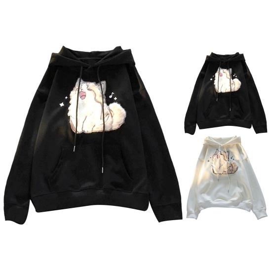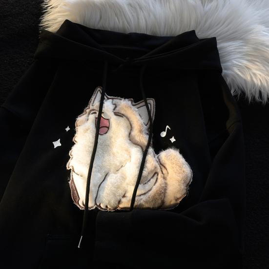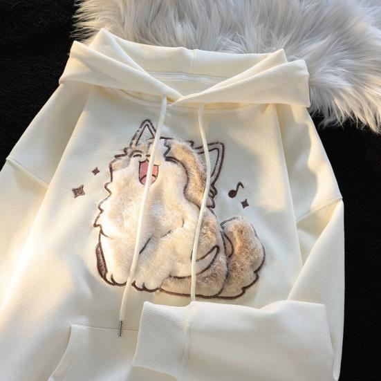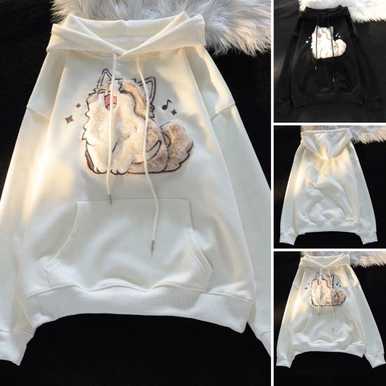 Сохраняйте уют и стиль с этой однотонной женской толстовкой-пуловером с капюшоном, которая идеально подходит для осеннего и зимнего сезонов.. Эта толстовка с капюшоном, украшенная очаровательной вышивкой в стиле мультфильма, одновременно элегантна и модна.. Фасон с капюшоном и длинные рукава делают его подходящим для разных типов телосложения, гарантируя удобную посадку..