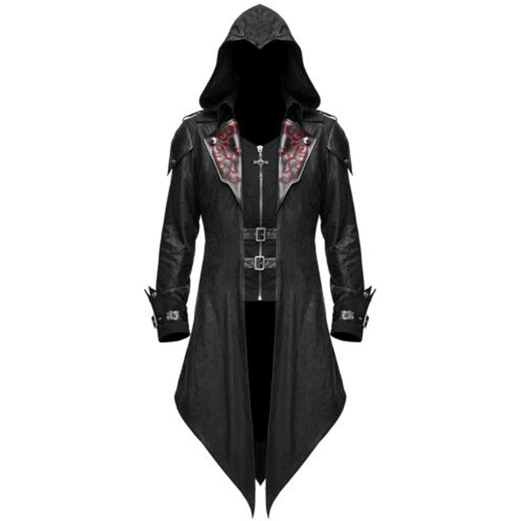 Мужской фрак, куртка, средневековый костюм, готический стимпанк, черная ретро-униформа с длинными рукавами, толстовка с капюшоном, вечерние зимние пальто, верхняя одежда