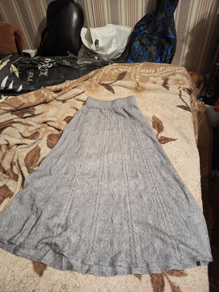 Юбка трикотажная вязанная, талия на резинке, но к сожалению не такая широкая как на промоыотг Проблемное место- животик, носить только с утягивающим бельем или с вещами на выпуск Мои параметры От 95 Об 108. Юбка тянется но облегает все неровности