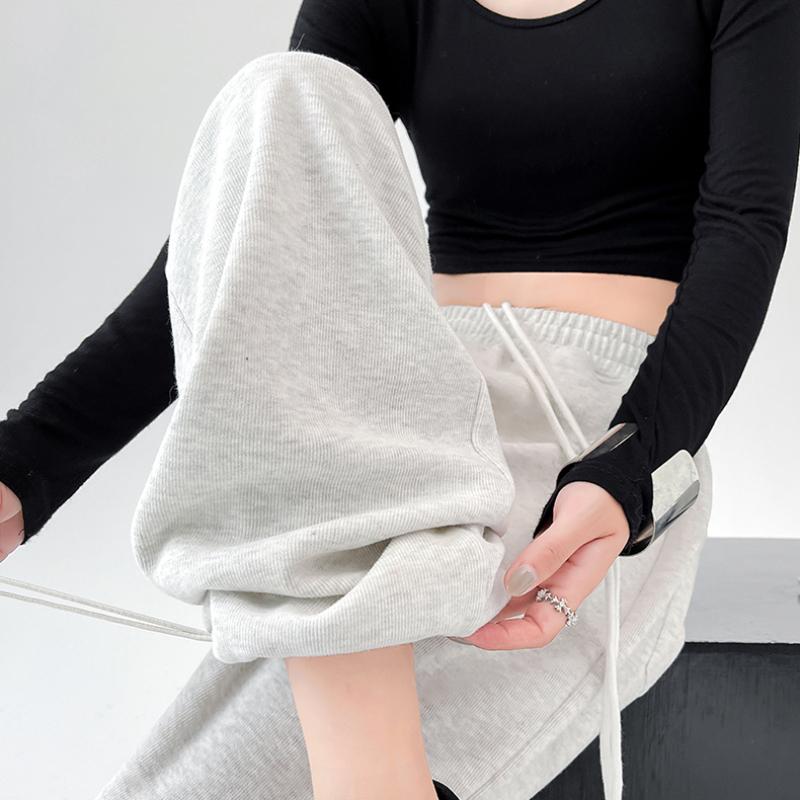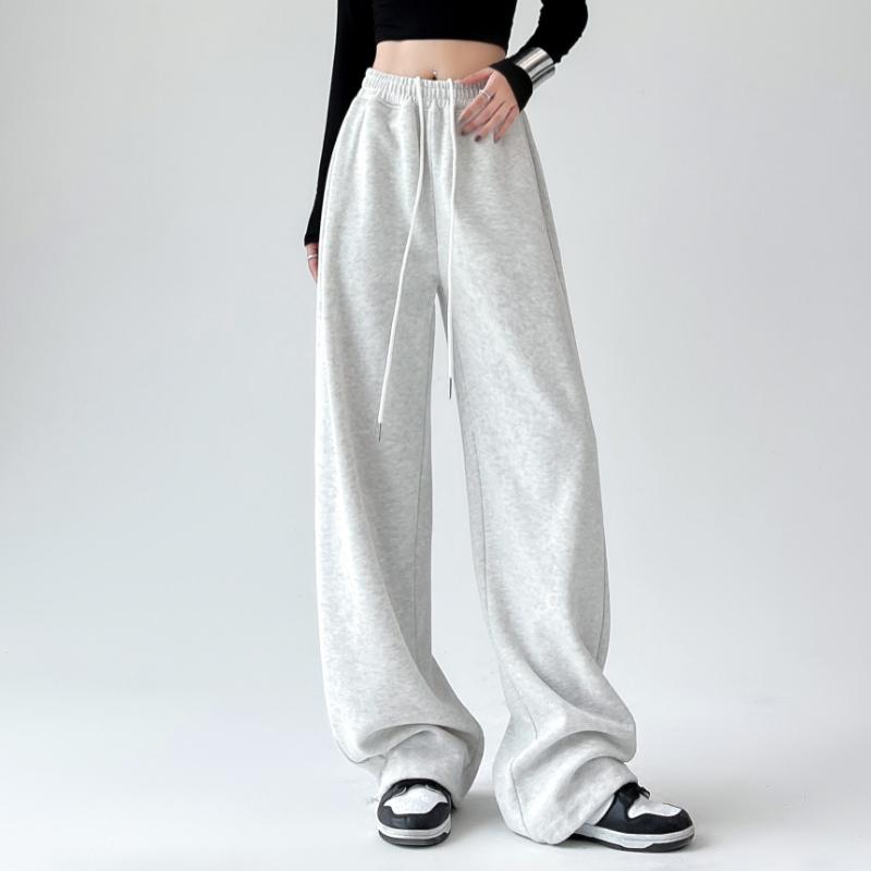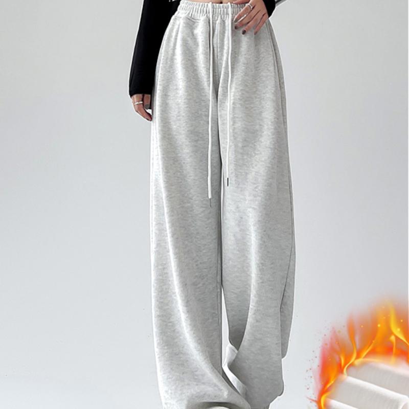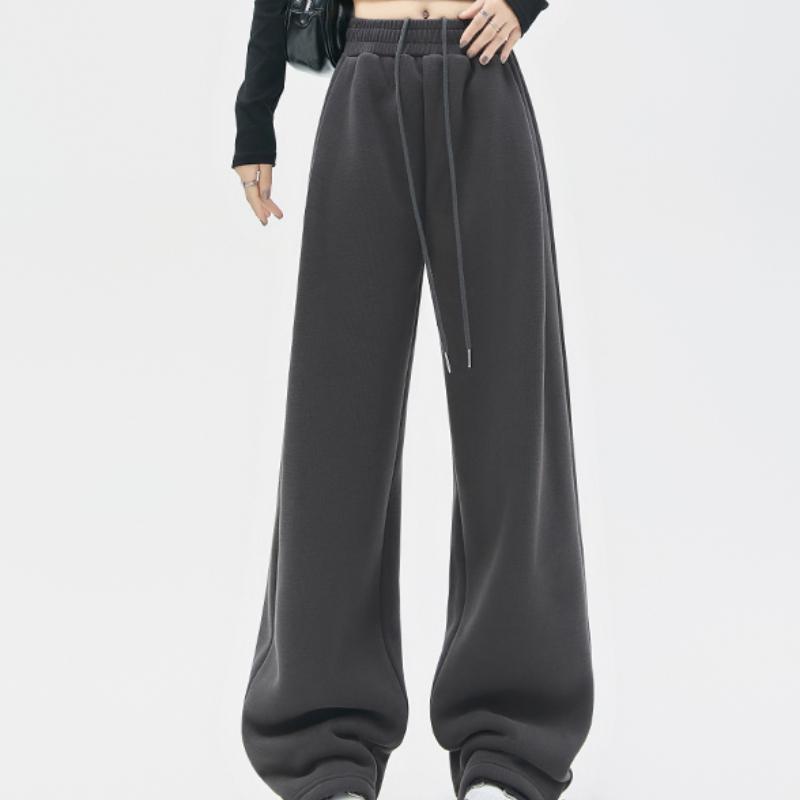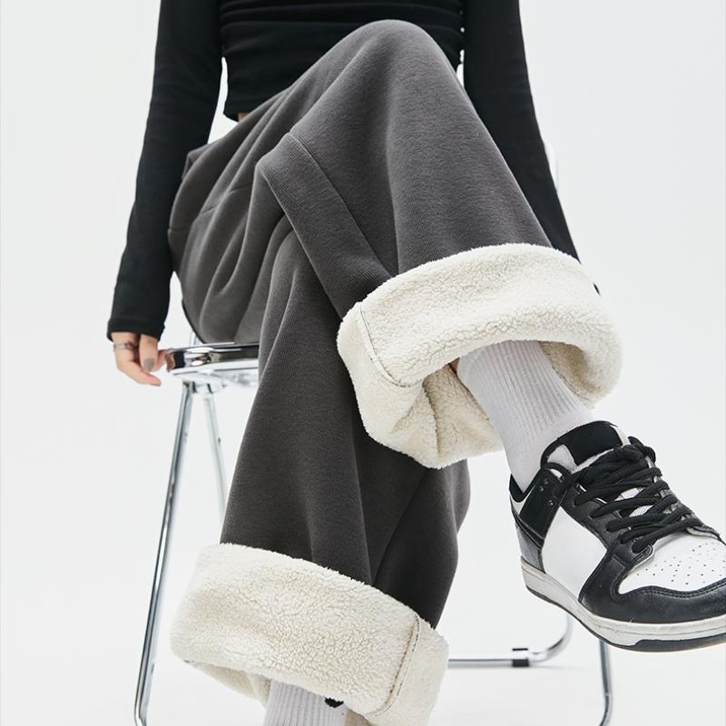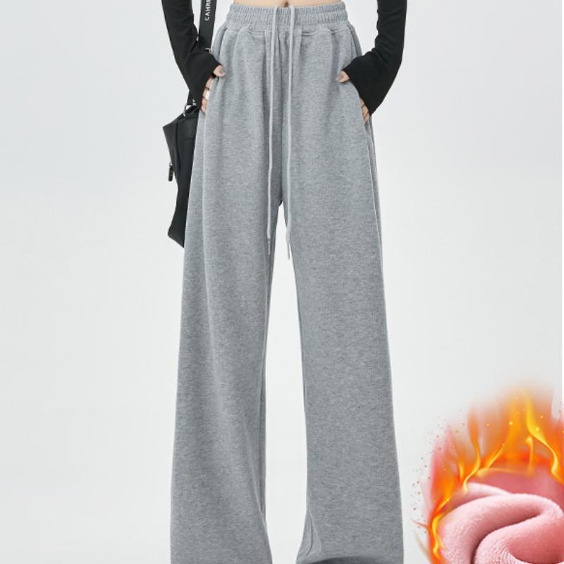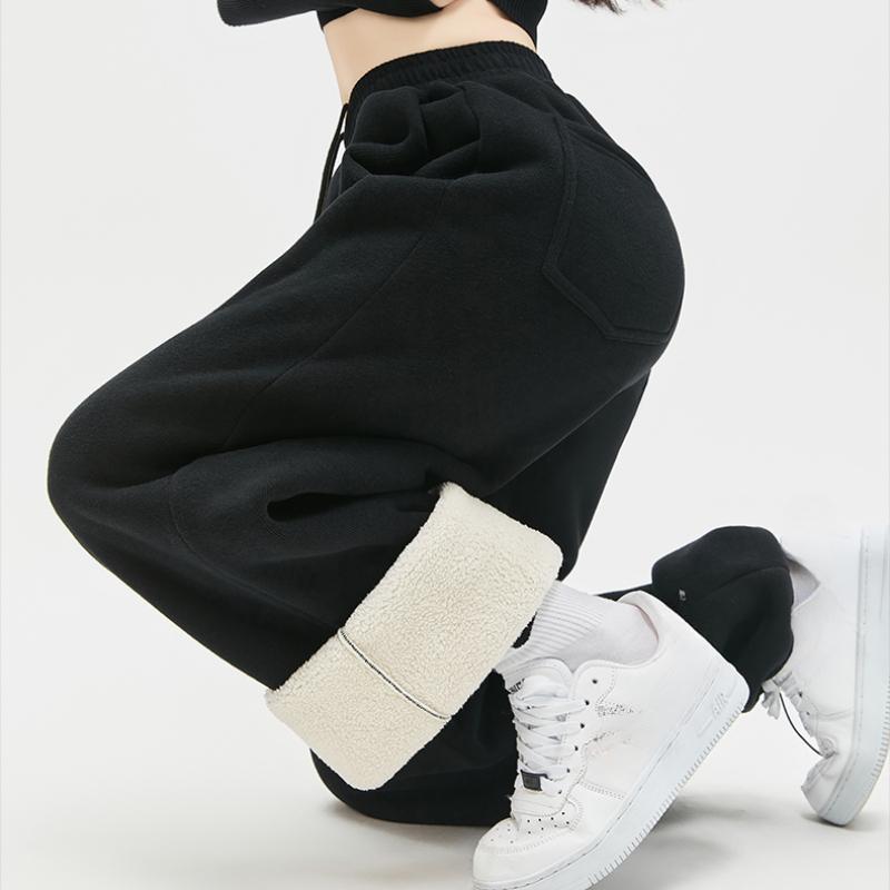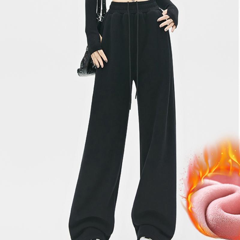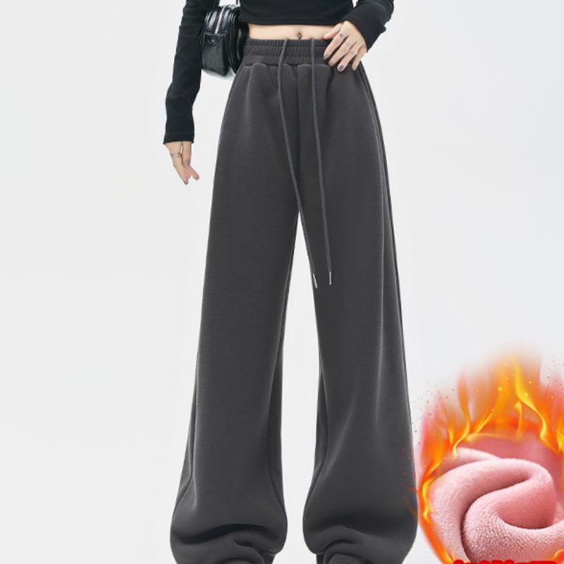 Осенне-зимние плюшевые флисовые теплые прямые широкие брюки женские элегантные однотонные свободные повседневные брюки женские модные простые женские брюки на шнурке 25714