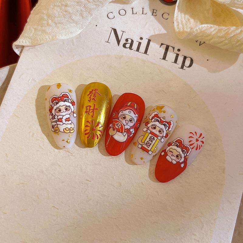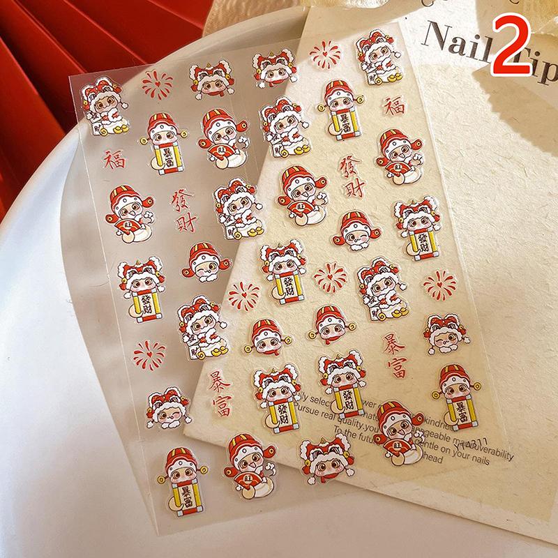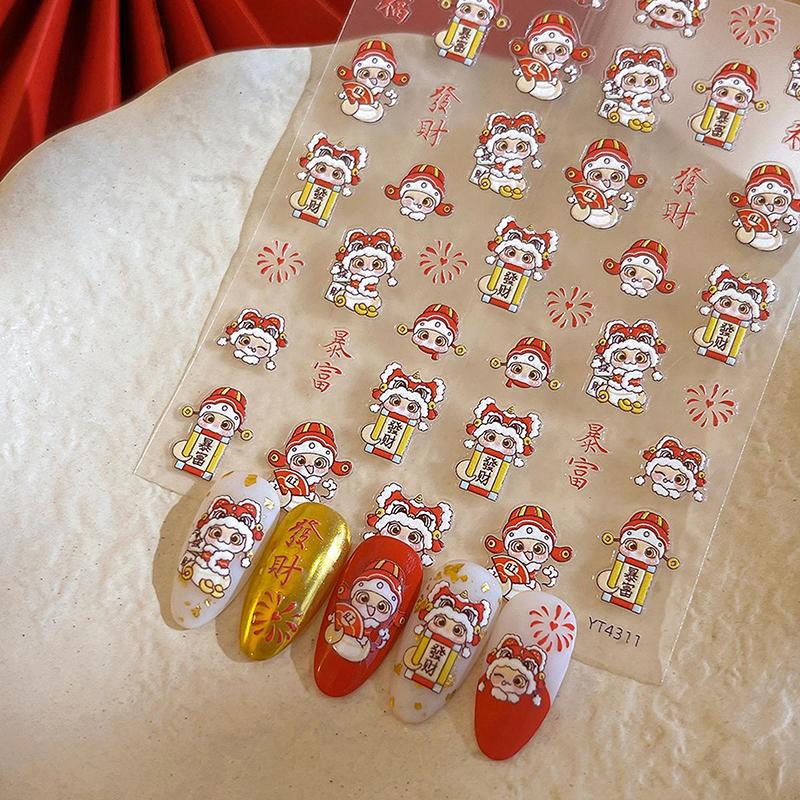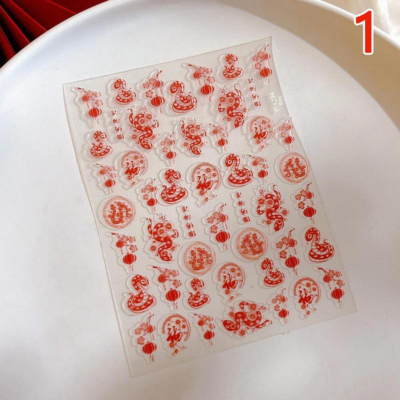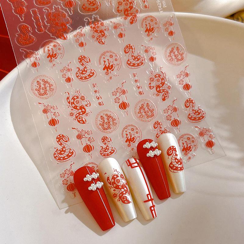 2025 Новогодние бумажные наклейки для ногтей 3D-рельефная скульптура в виде змеи, наклейки для ногтей, идеи для маникюра и декора