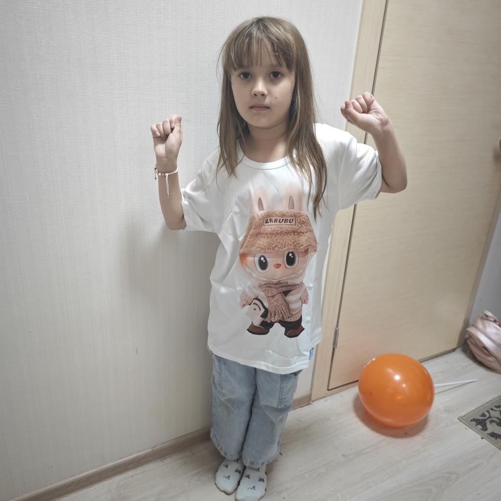 Летняя свободная футболка унисекс с короткими рукавами для мужчин/женщин LABUBU Printed Top