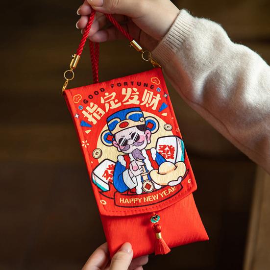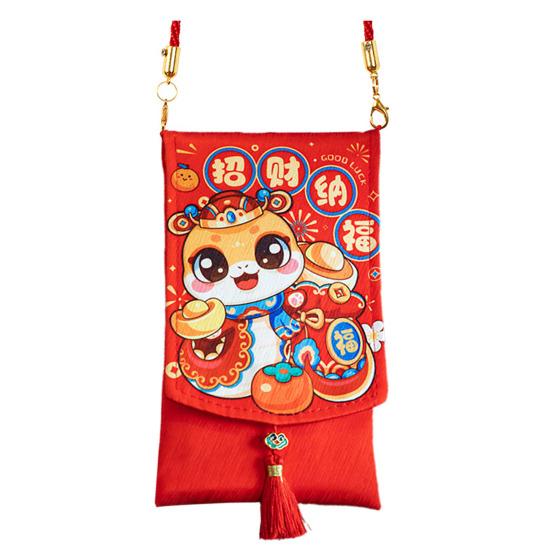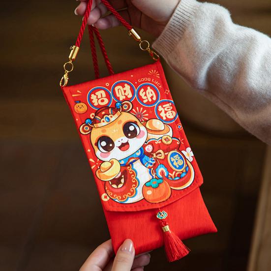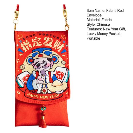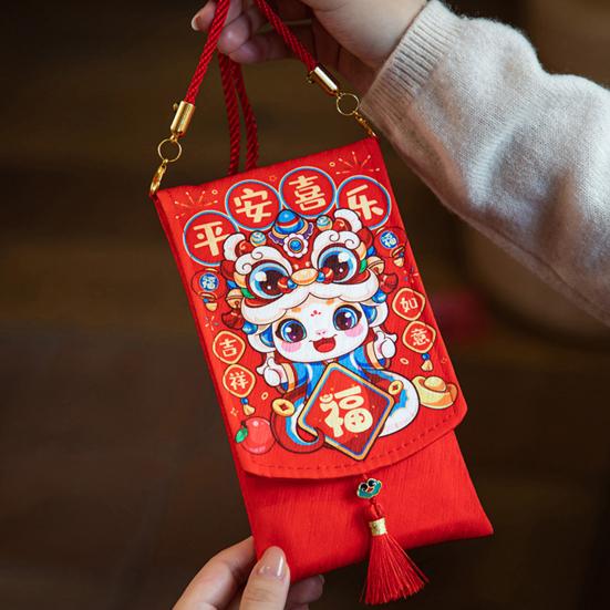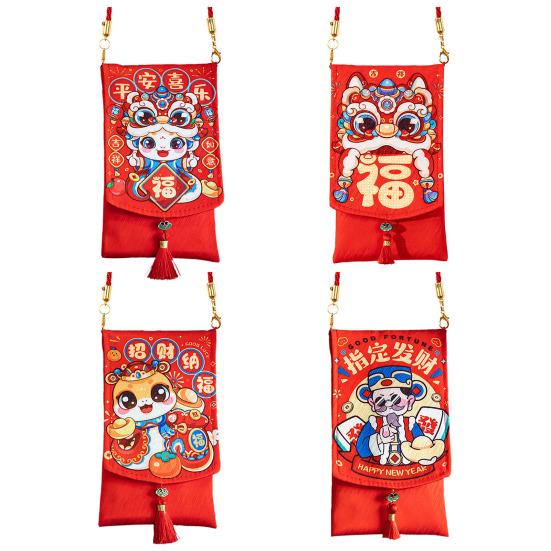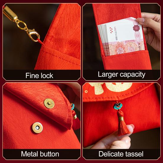 Этот высококачественный красный конверт изготовлен из прочного тканевого материала, что гарантирует его долговечность.. Удобная конструкция с подвесным тросом обеспечивает легкую переноску. Красный цвет символизирует удачу в китайской культуре, а традиционные узоры и элементы передают благословения и добрые пожелания.. Эти конверты идеально подходят для празднования китайского Нового года. Они украшены праздничными китайскими узорами, олицетворяющими счастье и процветание, отражающими суть китайских традиций..
