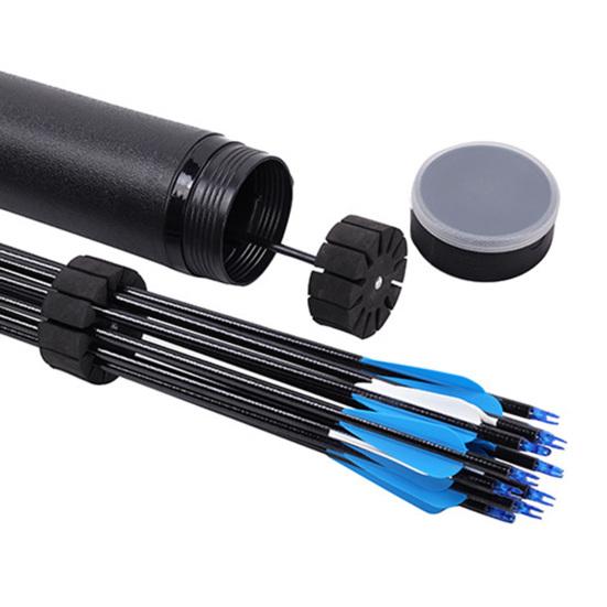 Круглая форма и большая емкость позволяют разместить 20–30 стрел, а для дополнительного удобства в пути можно прикрепить подставку для стрел.. Встроенный сепаратор стрел оснащен губчатой головкой, защищающей стрелы от трения, что делает его незаменимым аксессуаром для любителей стрельбы из лука и стрел.