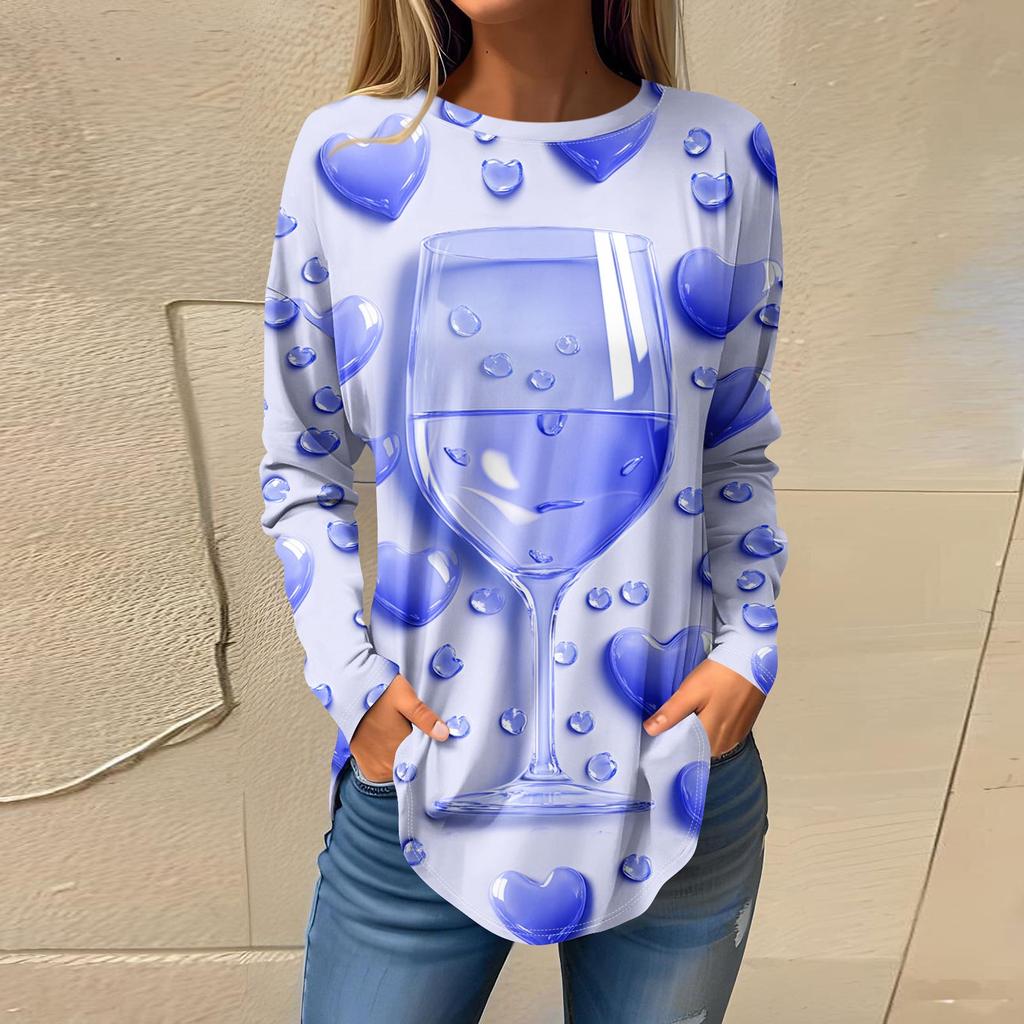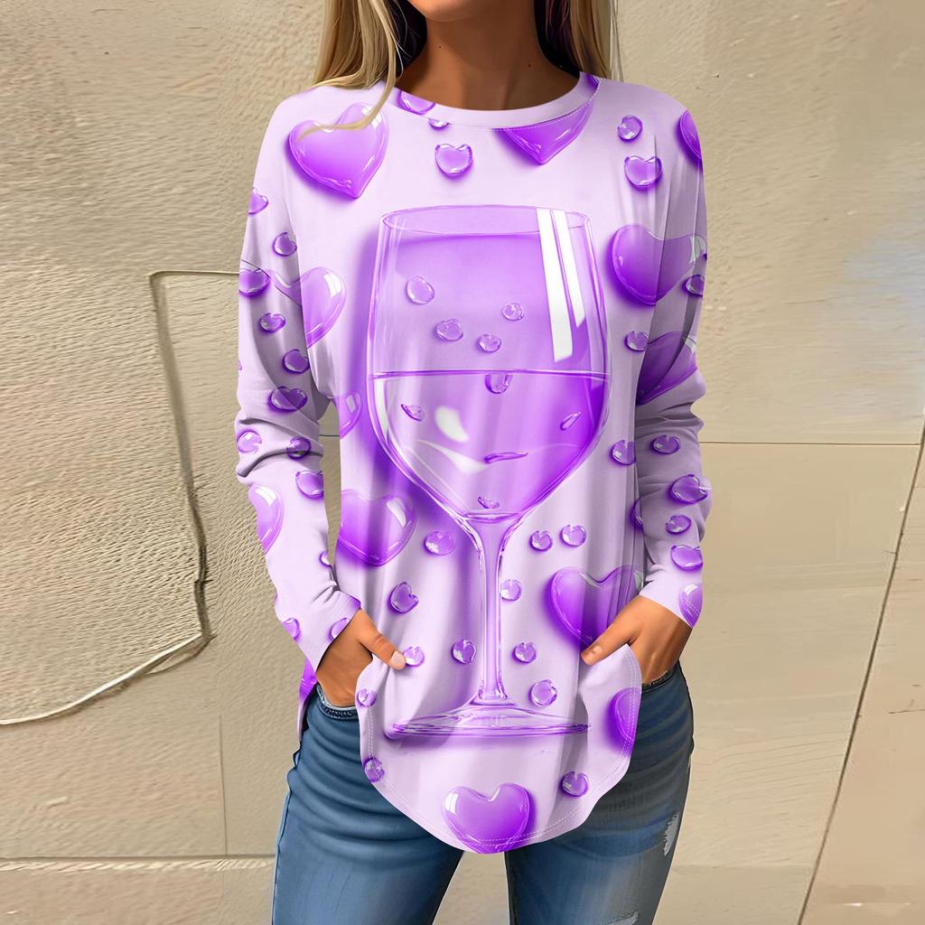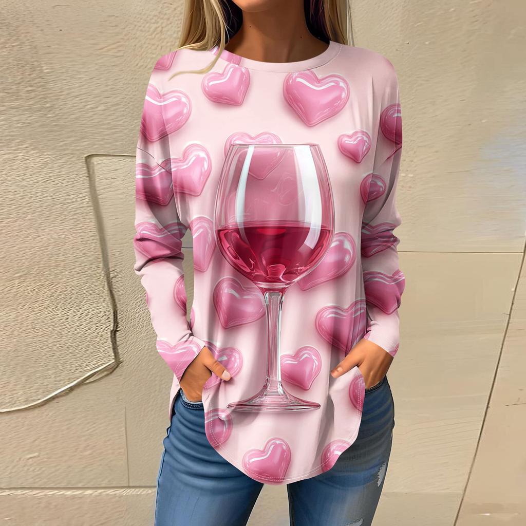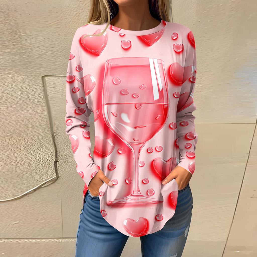 Футболки для женщин Повседневные рубашки с круглым вырезом и длинным рукавом с принтом ко Дню святого Валентина Топ-пуловер