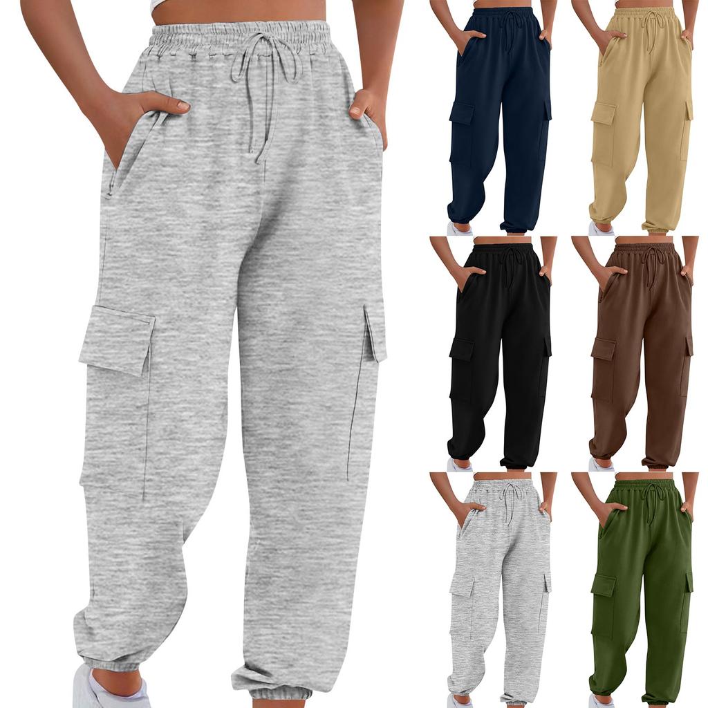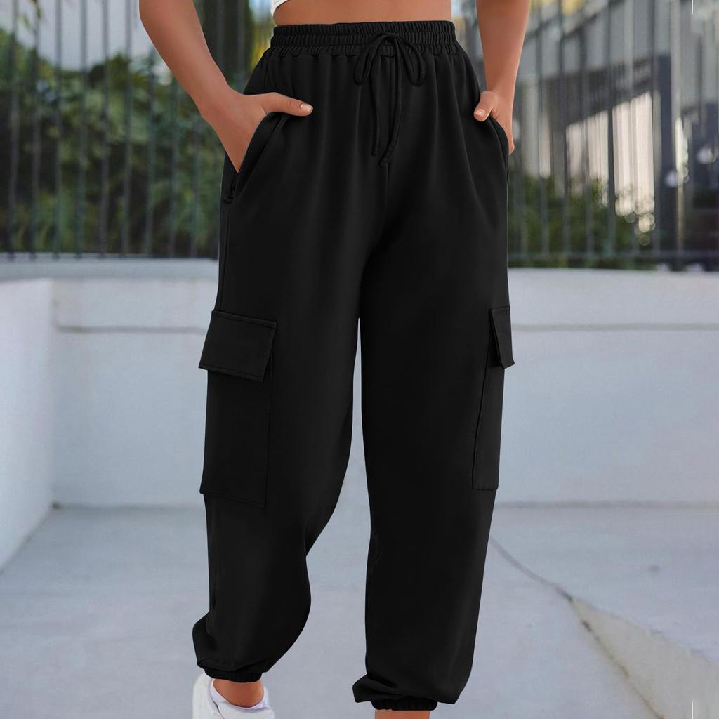Женские модные спортивные рабочие брюки со шнурком, свободные однотонные повседневные брюки