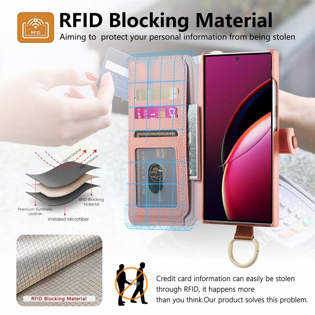 Чехол для Samsung Galaxy S25 Ultra, блокирующий RFID, кошелек на молнии, мобильный чехол из ПУ кожи