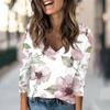 Женская модная повседневная футболка с принтом весенних цветов и V-образным вырезом, заниженной линией плеч, длинным рукавом