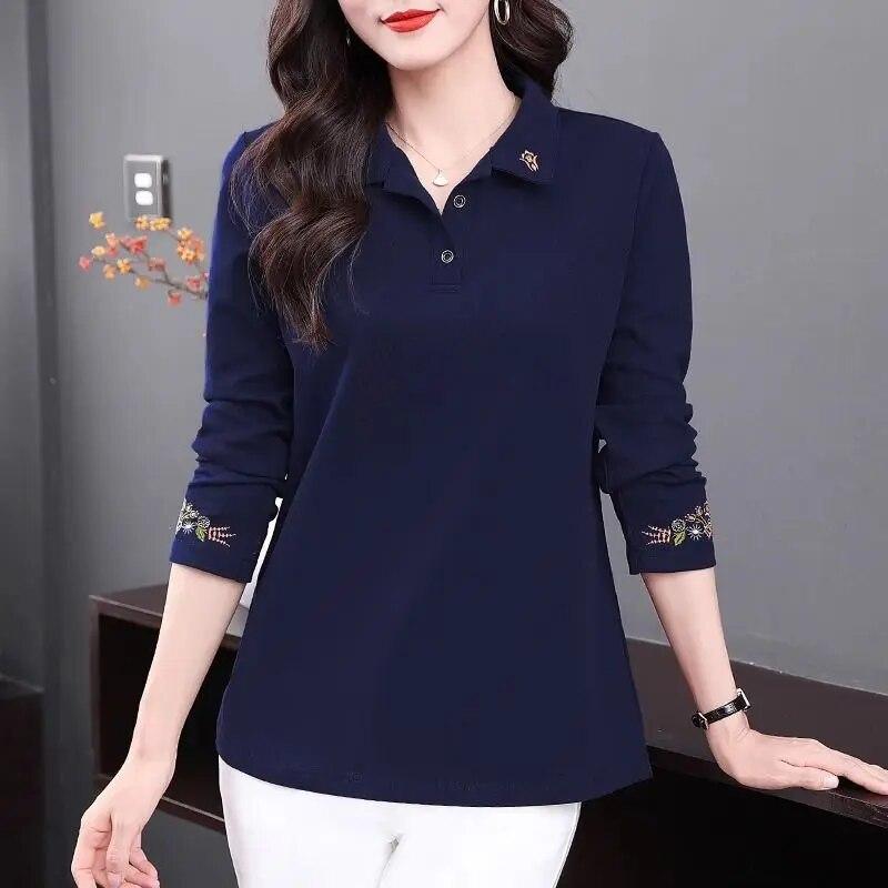 Женские винтажные элегантные футболки с воротником-поло с вышивкой, весенне-осенние корейские модные повседневные свободные топы с длинными рукавами, Ropa De Mujer — купить товар онлайн с бесплатной доставкой до всему миру!