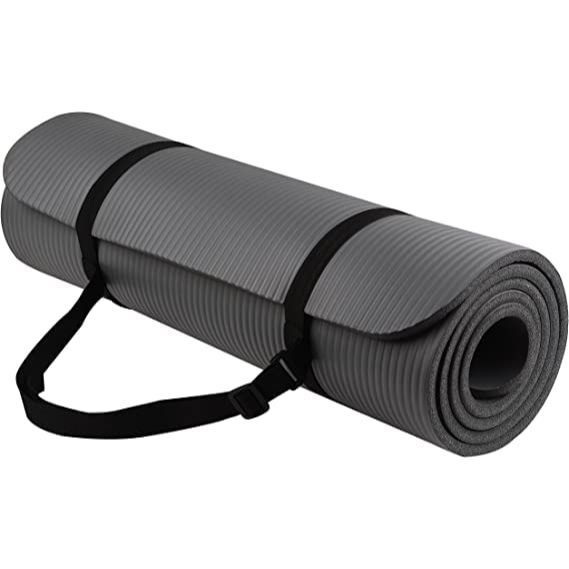 Экологичный нескользящий коврик для йоги с липкой поверхностью и ремнем для переноски для дома, спортзала, тренировок на открытом воздухе, медитации и фитнеса.(4мм) (Размер:183см* 61см* 0,4см) (Пакет из 1) (серый) Мужчины и женщины