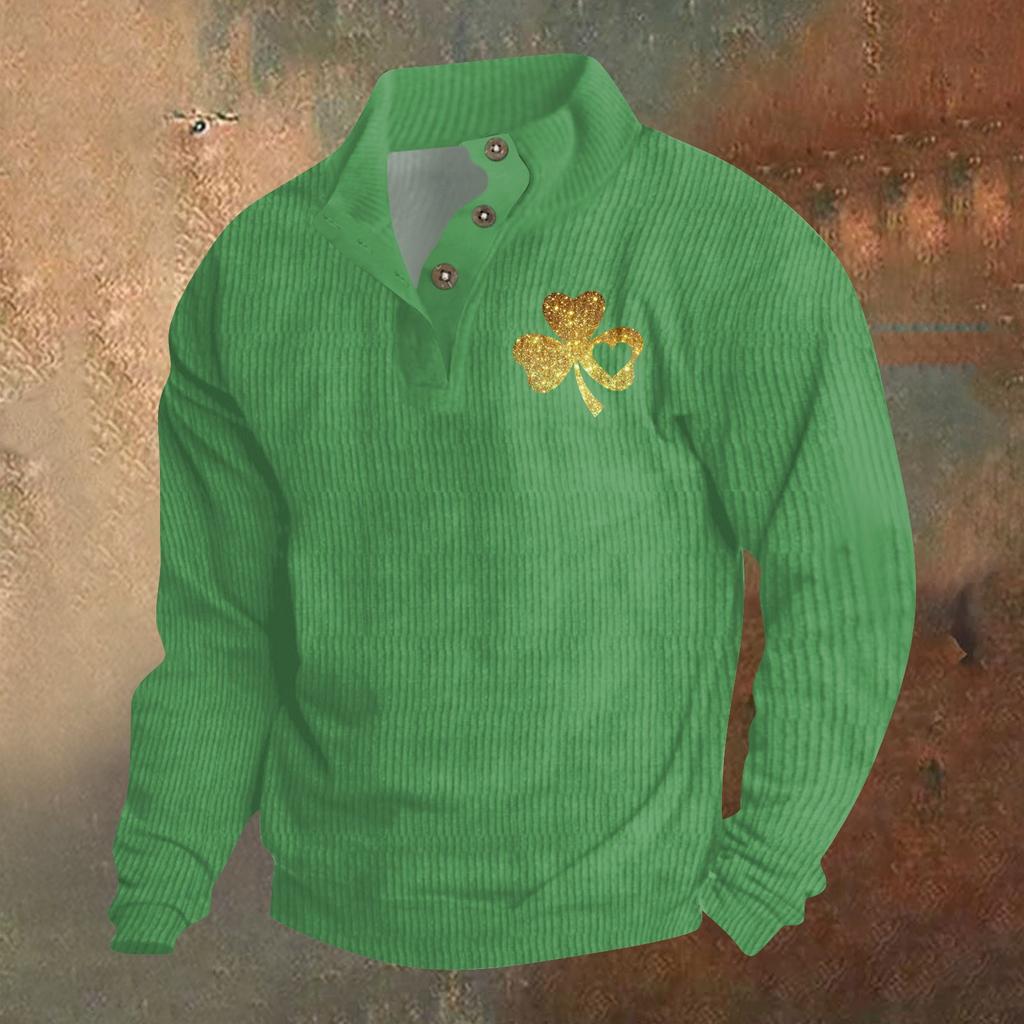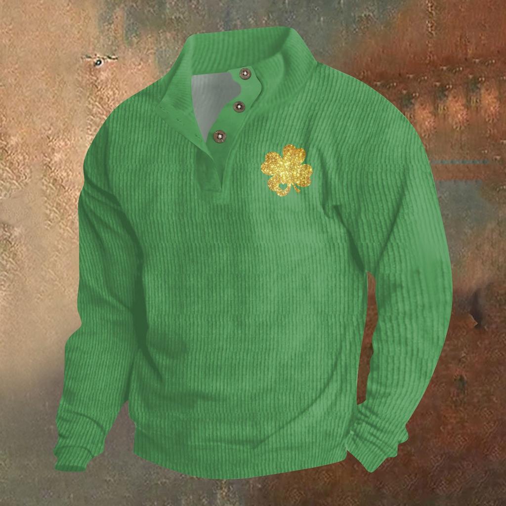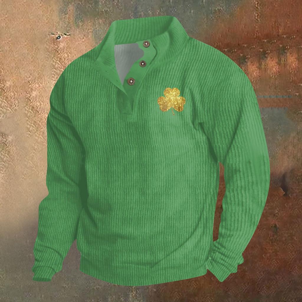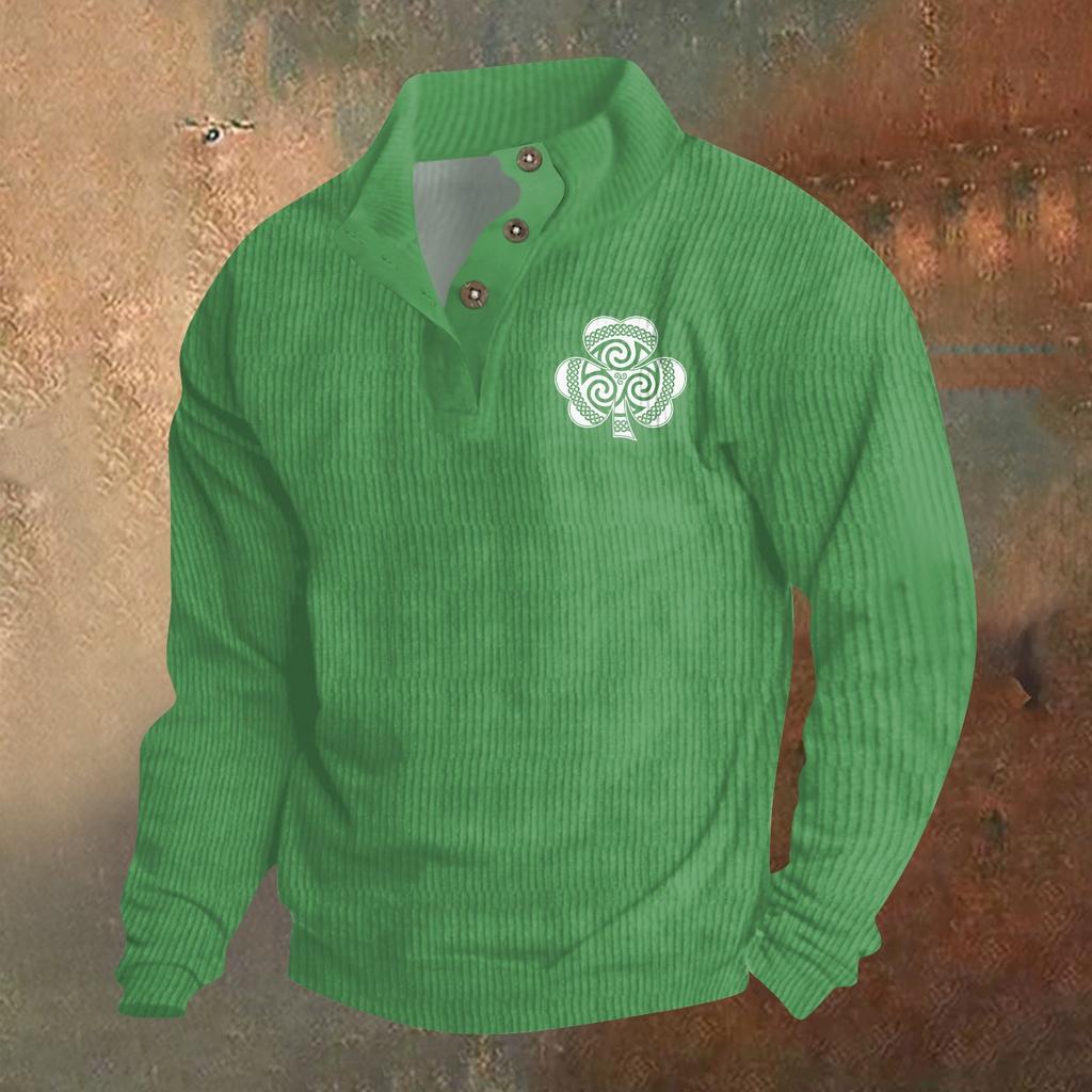 Трикотажный принт на 3 пуговицах - вельветовый мужской свитшот со стоячим воротником и карманом, повседневный свитшот на пуговицах для активного отдыха
