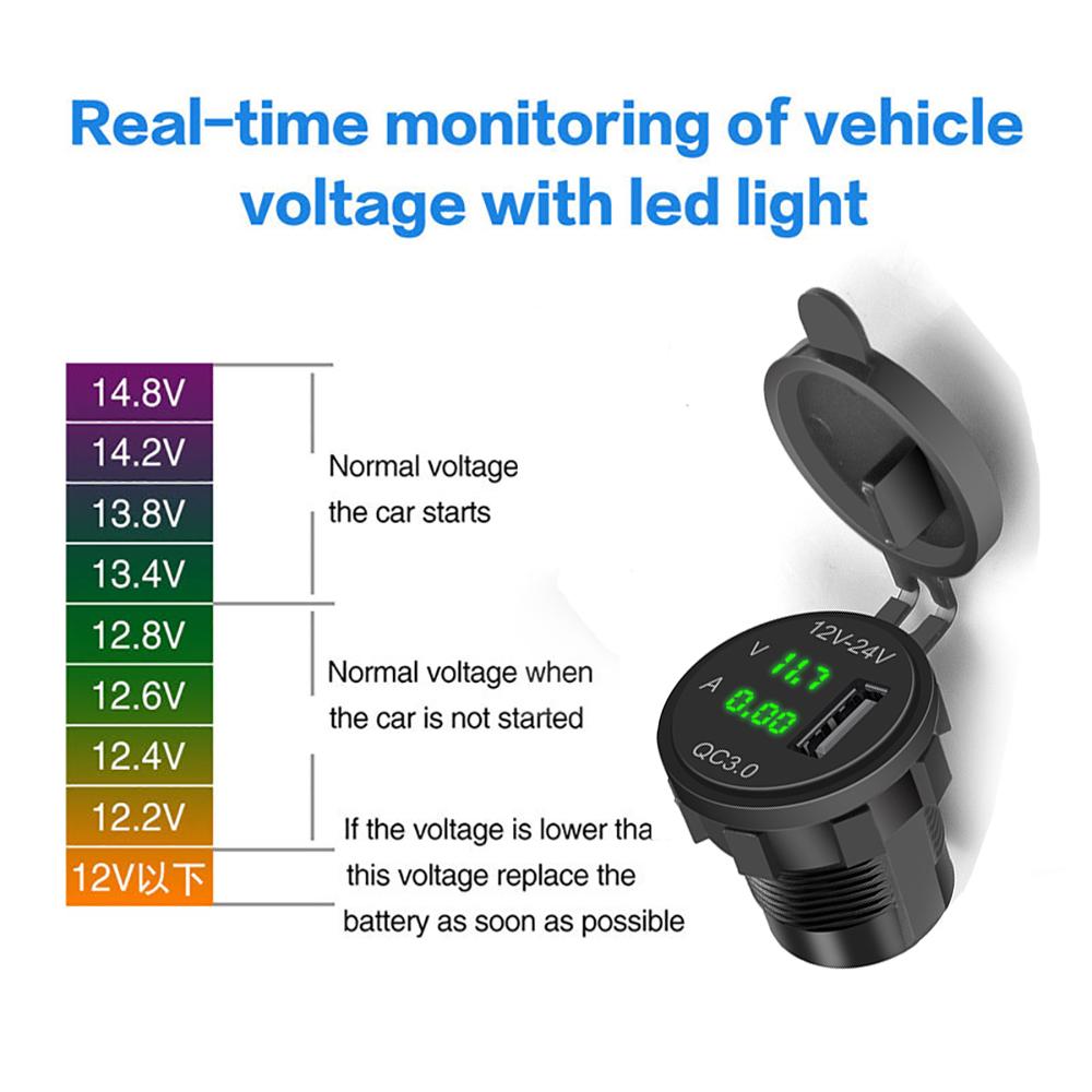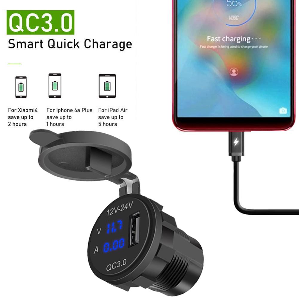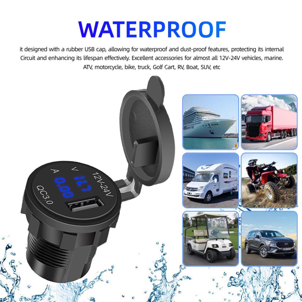 Motor QC 3.0 USB зарядное устройство для телефона быстрый адаптер питания цифровой вольтметр дисплей напряжения автомобиль DC12V-24V водонепроницаемая розетка
