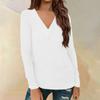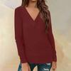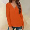 Женский повседневный однотонный принтованный длинный рукав свободный пуловер с V-образным вырезом