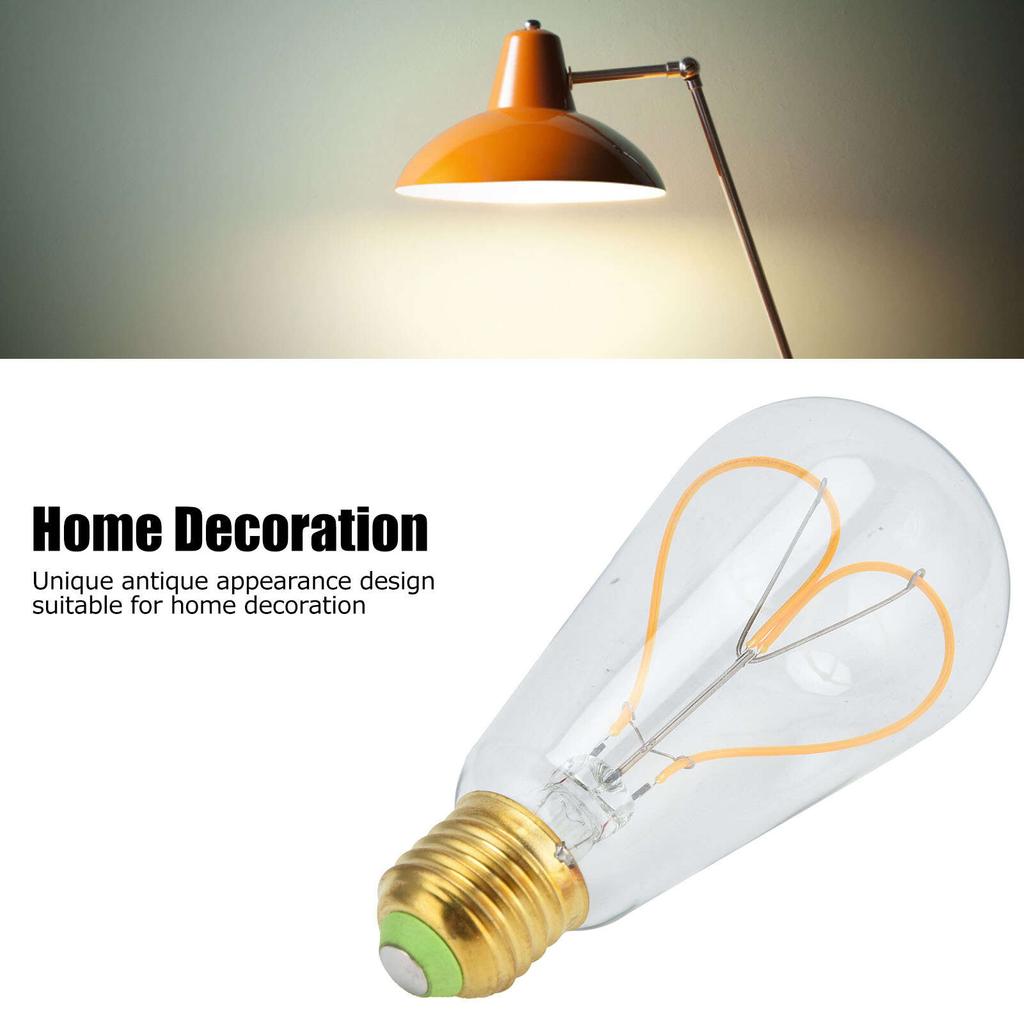 Винтажная лампочка E27 4 Вт с высокой светопропускаемостью, гибкая спиральная нить накаливания, регулируемая яркость, теплый свет, светодиодная лампа