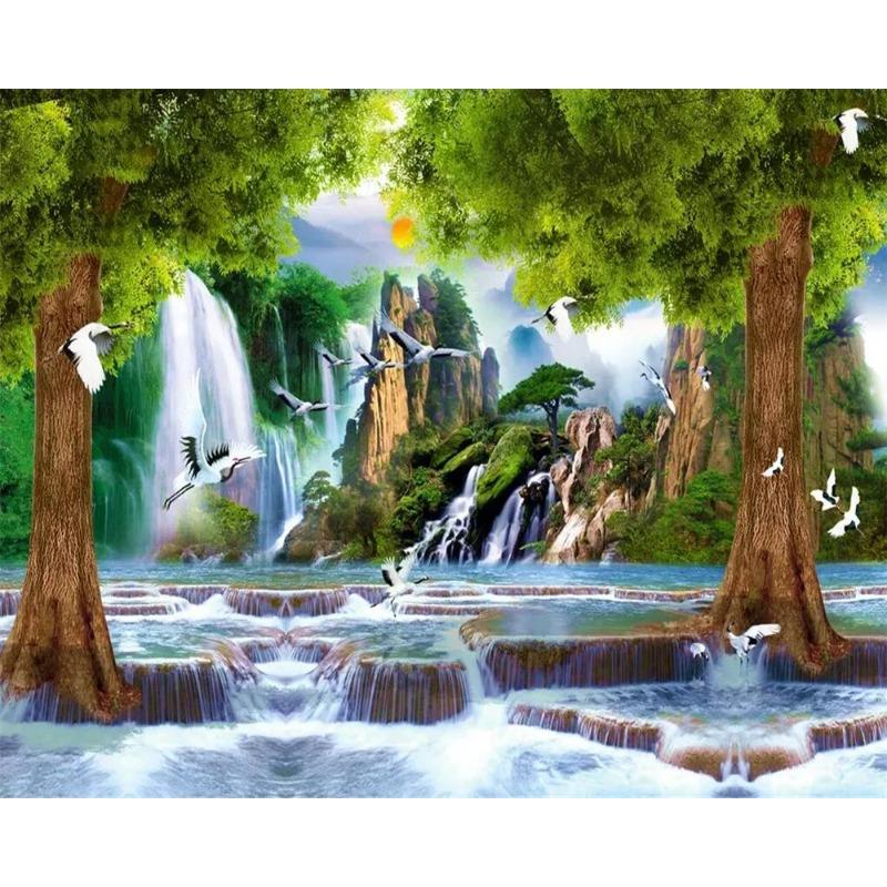 3d обои Пейзаж Большое дерево Водопад Обои Гостиная Диван Фон Настенные росписи Украшения дома