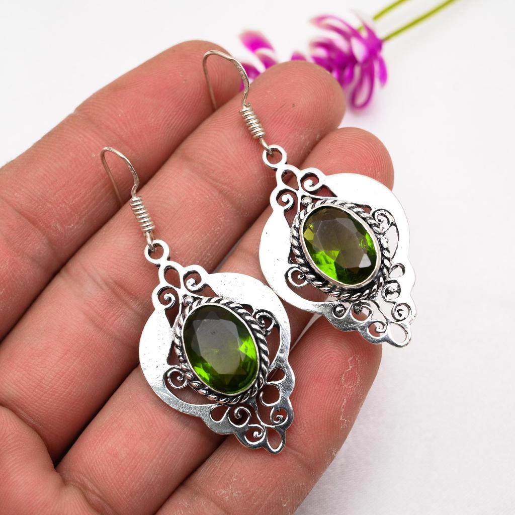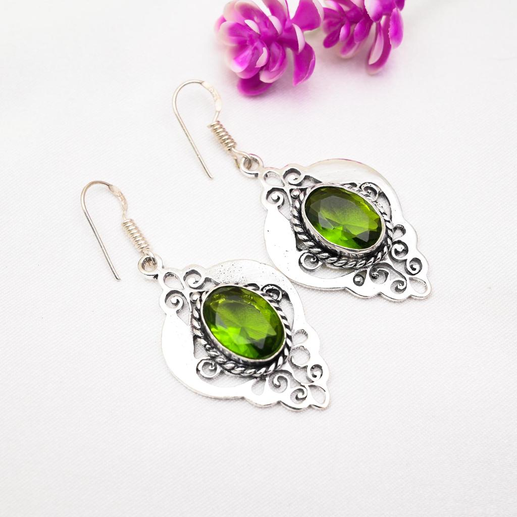 Серьги с драгоценными камнями из перидота, серьги из чистого серебра 925 пробы, серьги ручной работы с камнями по месяцу рождения, подарок для него