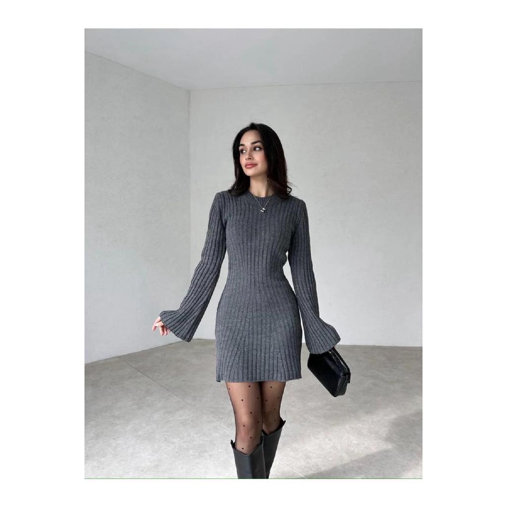 Женское зимнее трикотажное платье мини в рубчик — купить товар онлайн с бесплатной доставкой до всему миру!