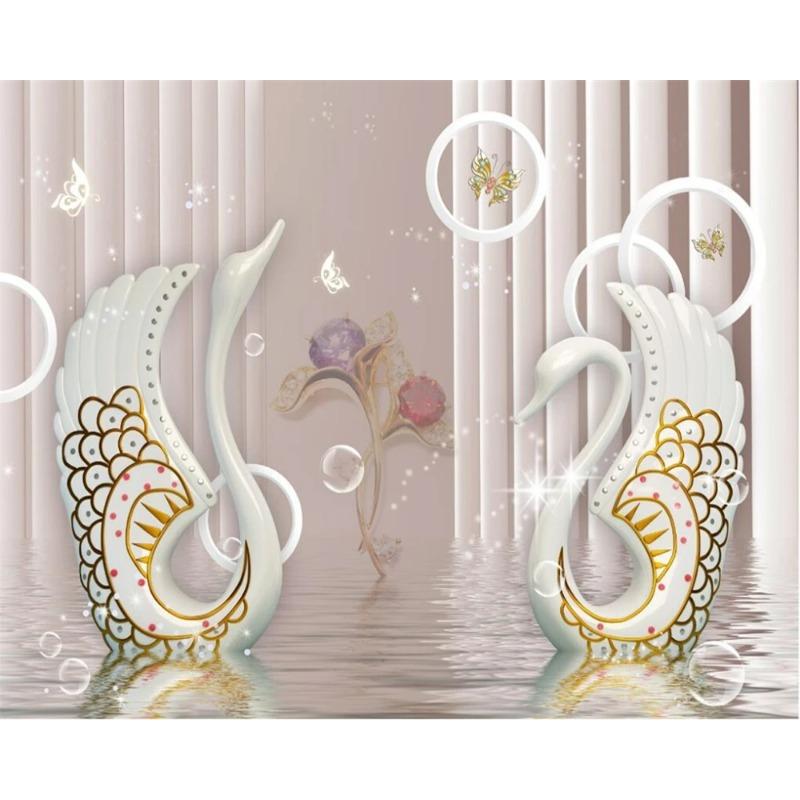 Современные 3d обои Роскошные европейские фрески Лебедь Ювелирные изделия Цветочные обои Гостиная ТВ Фон Настенная живопись