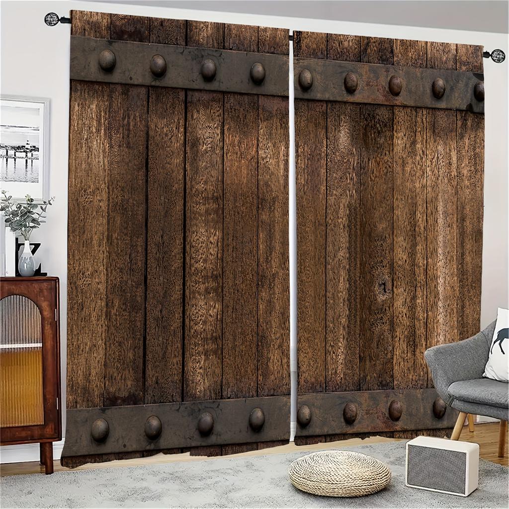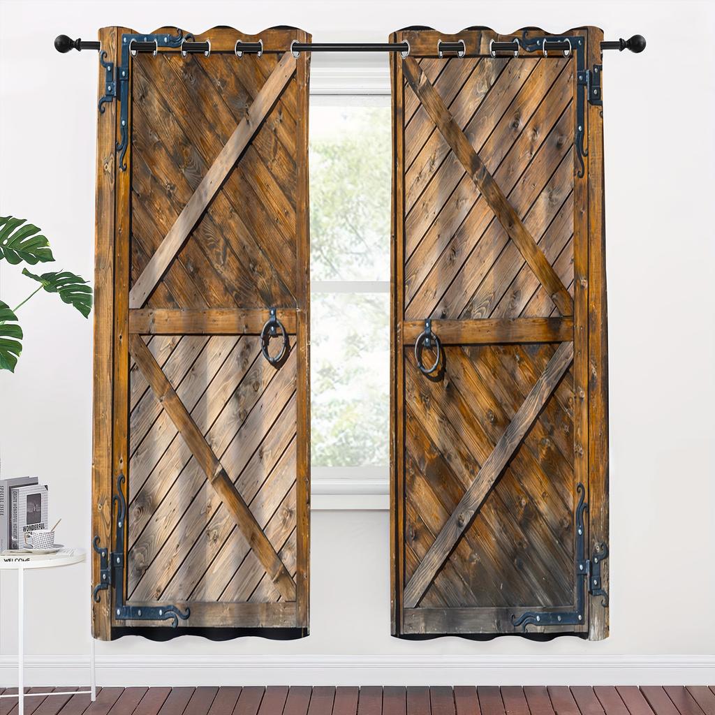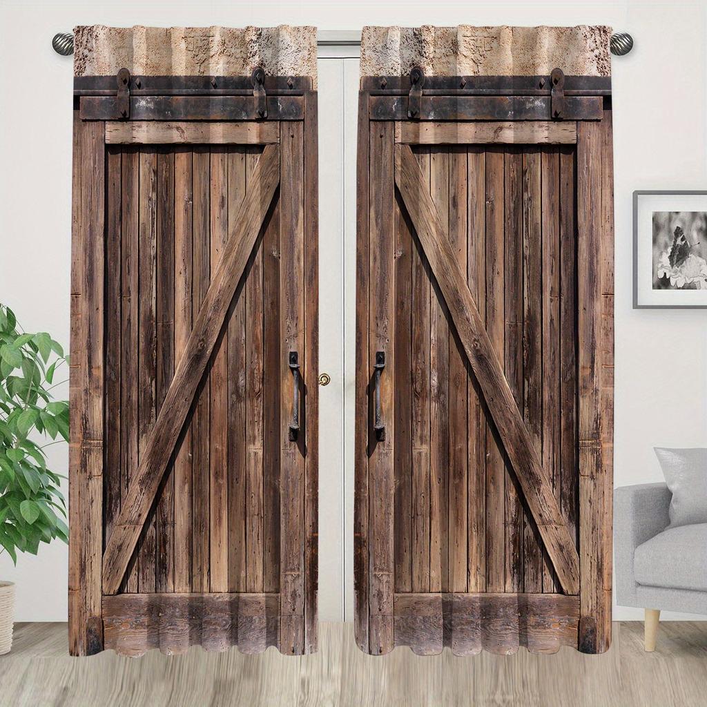 2 шт. Дверь амбара антикварная деревенская ферма старое дерево цифровая печать гостиная шторы люверсы верхние шторы гостиная офис