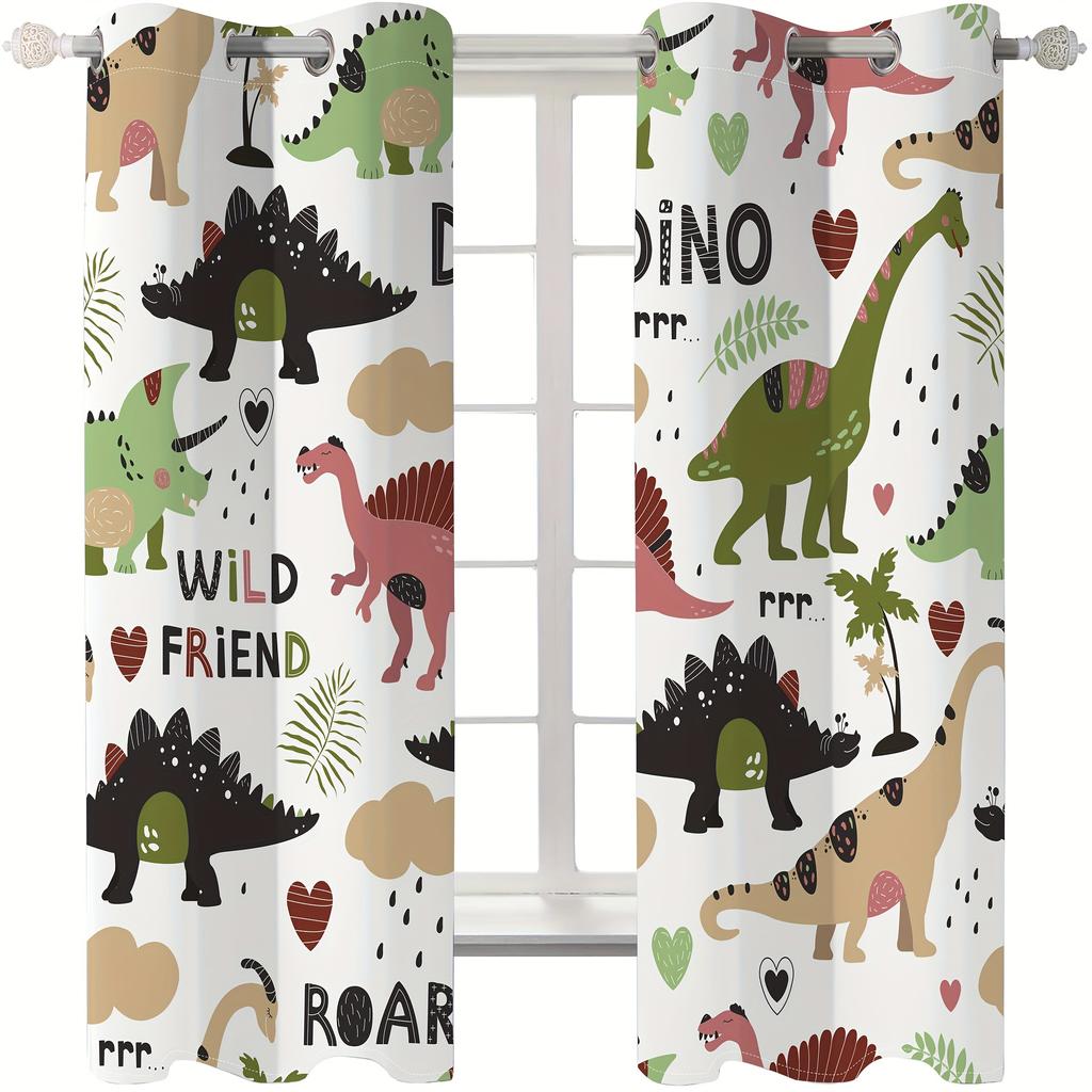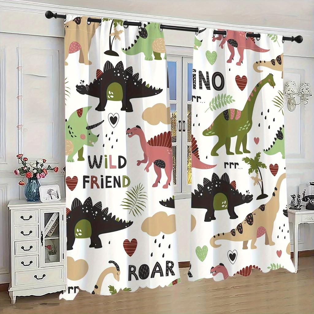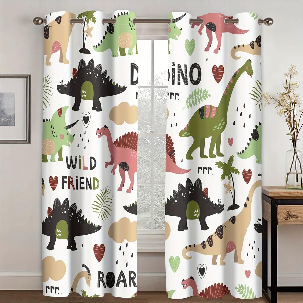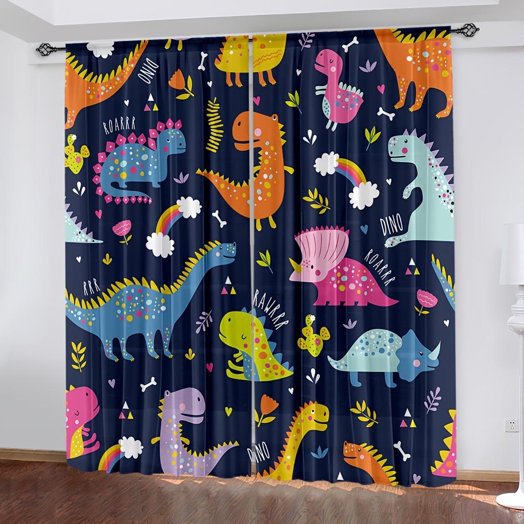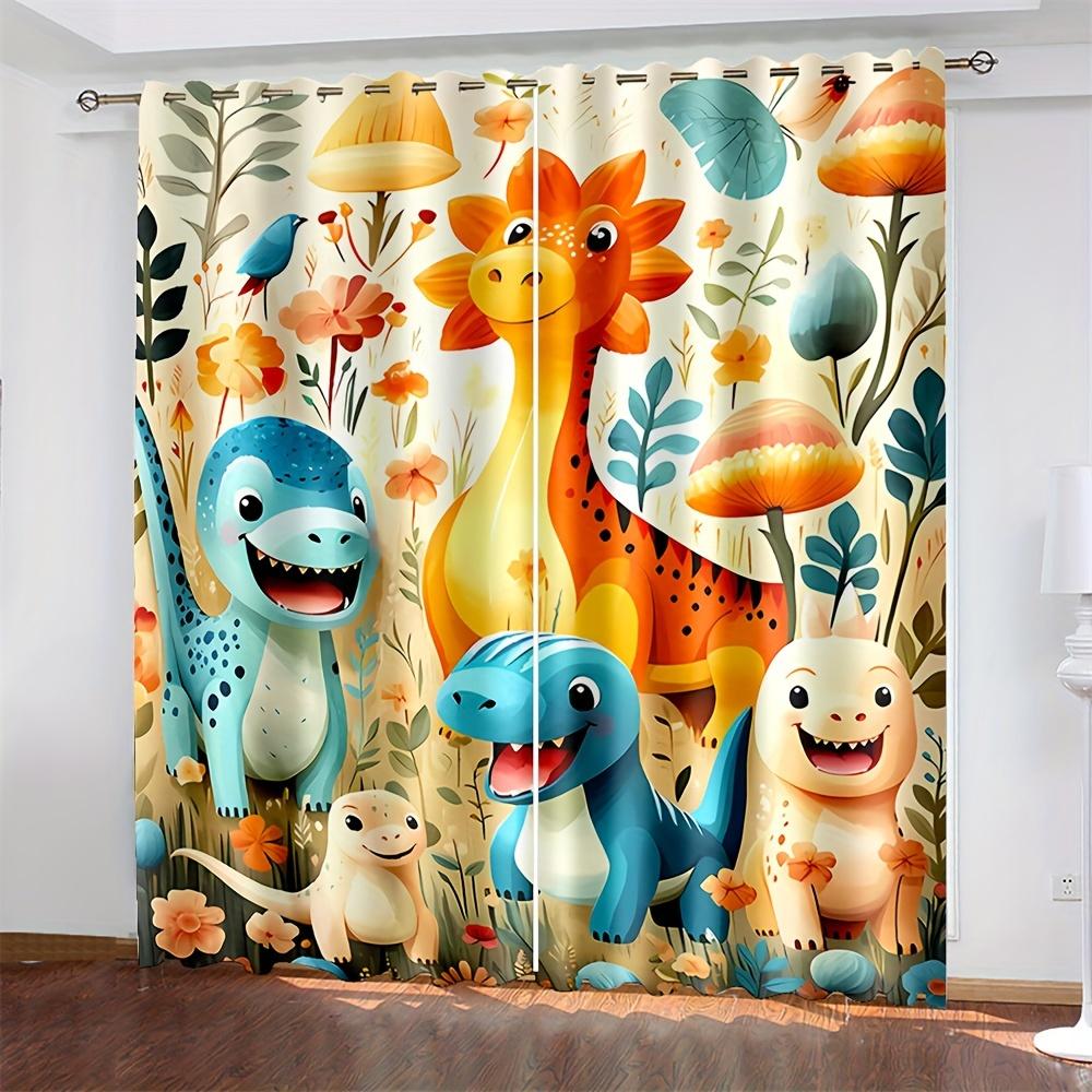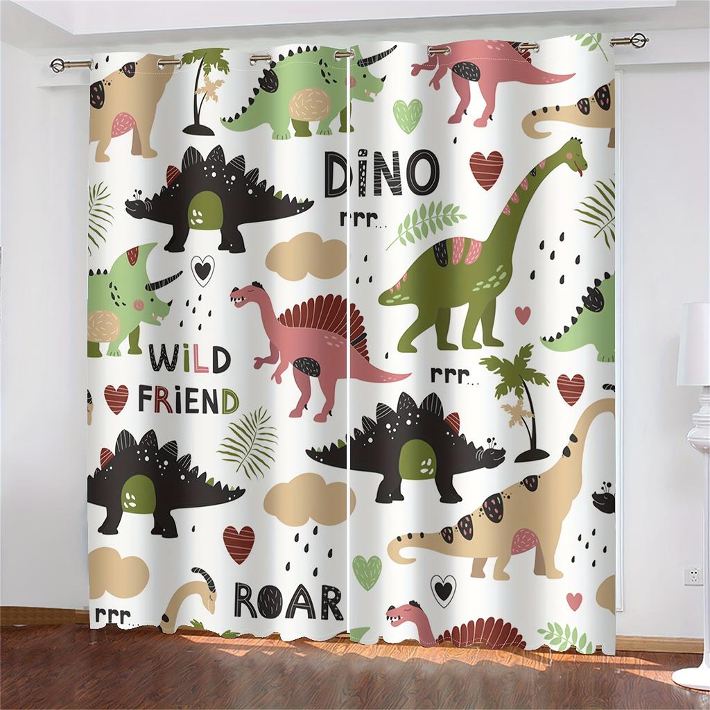 2-х компонентный мультфильм динозавр красочные животные цифровой принт гостиная шторы полупрозрачные люверсы верхние оконные шторы для спальни