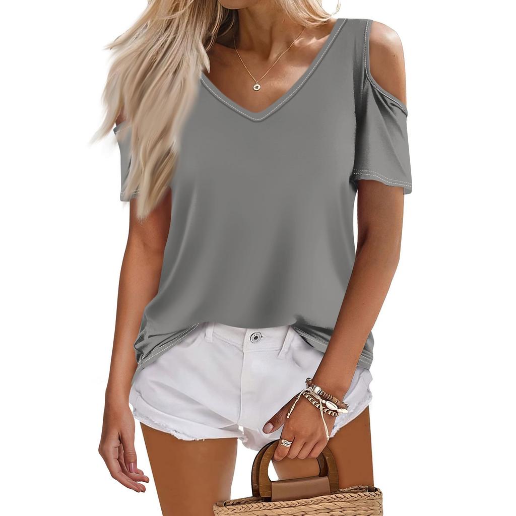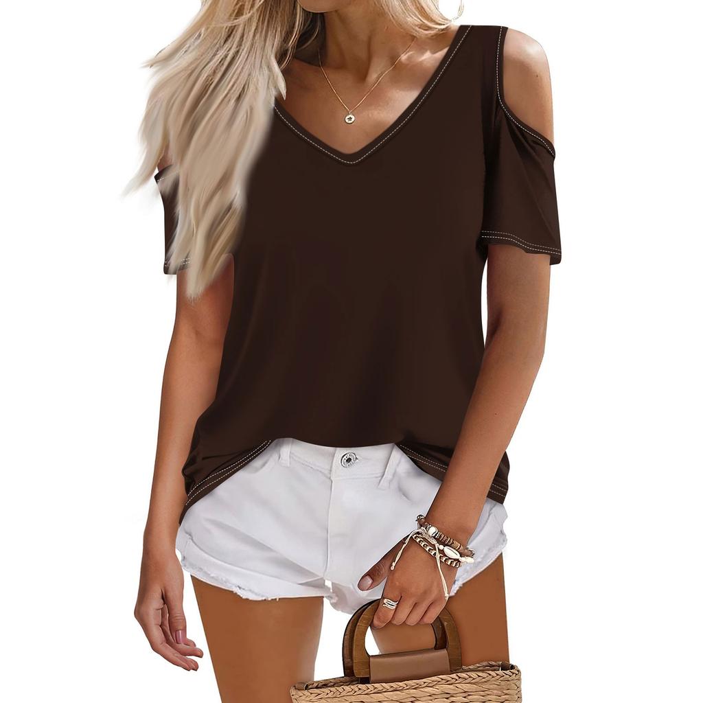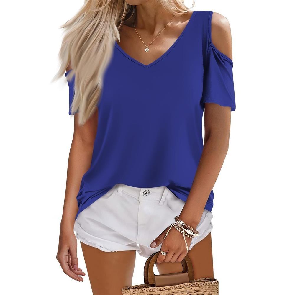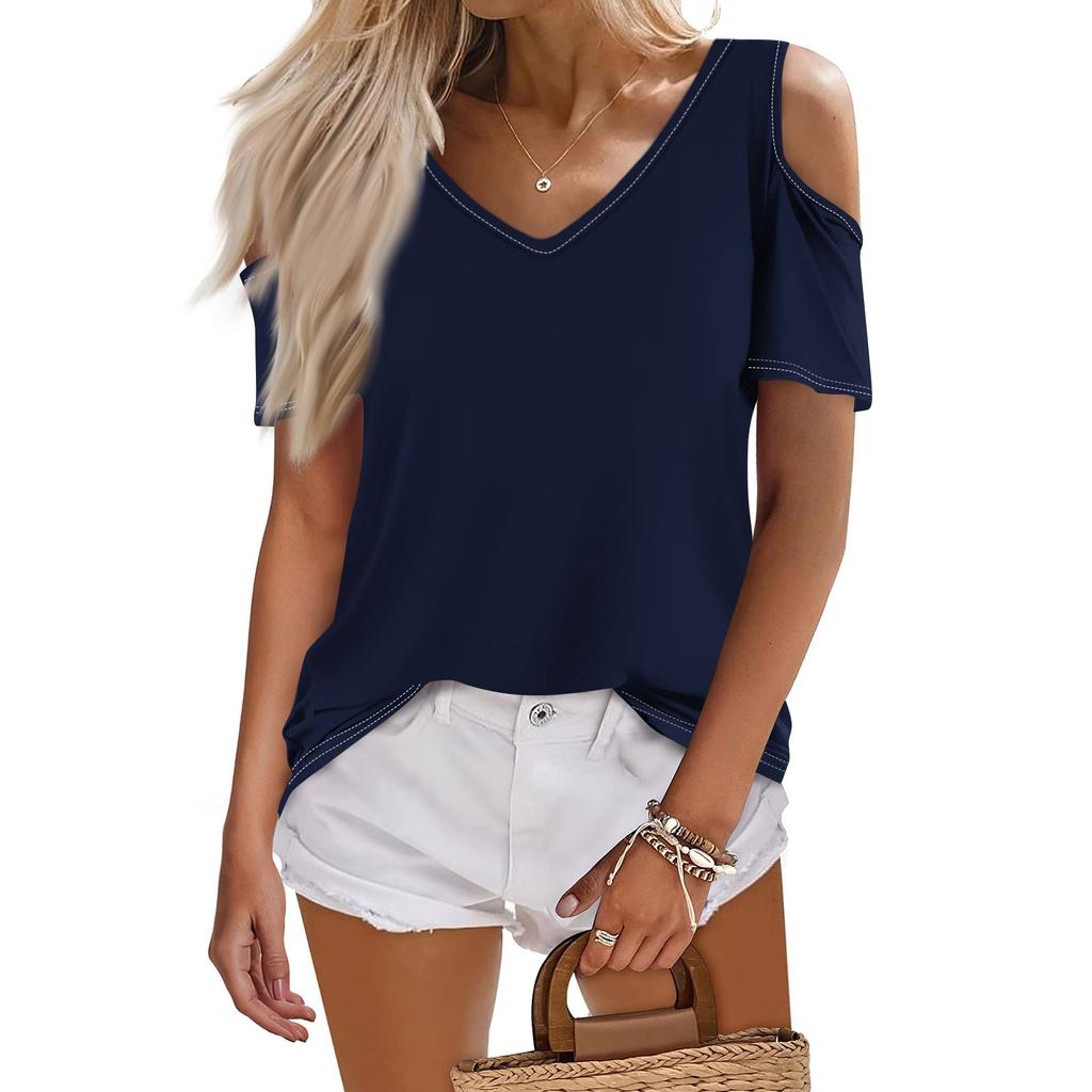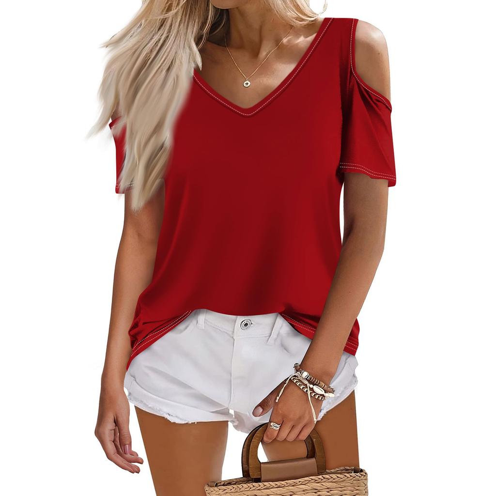 Женская летняя модная повседневная однотонная футболка с v-образным вырезом и коротким рукавом, топ