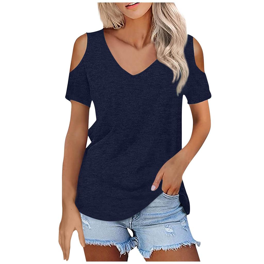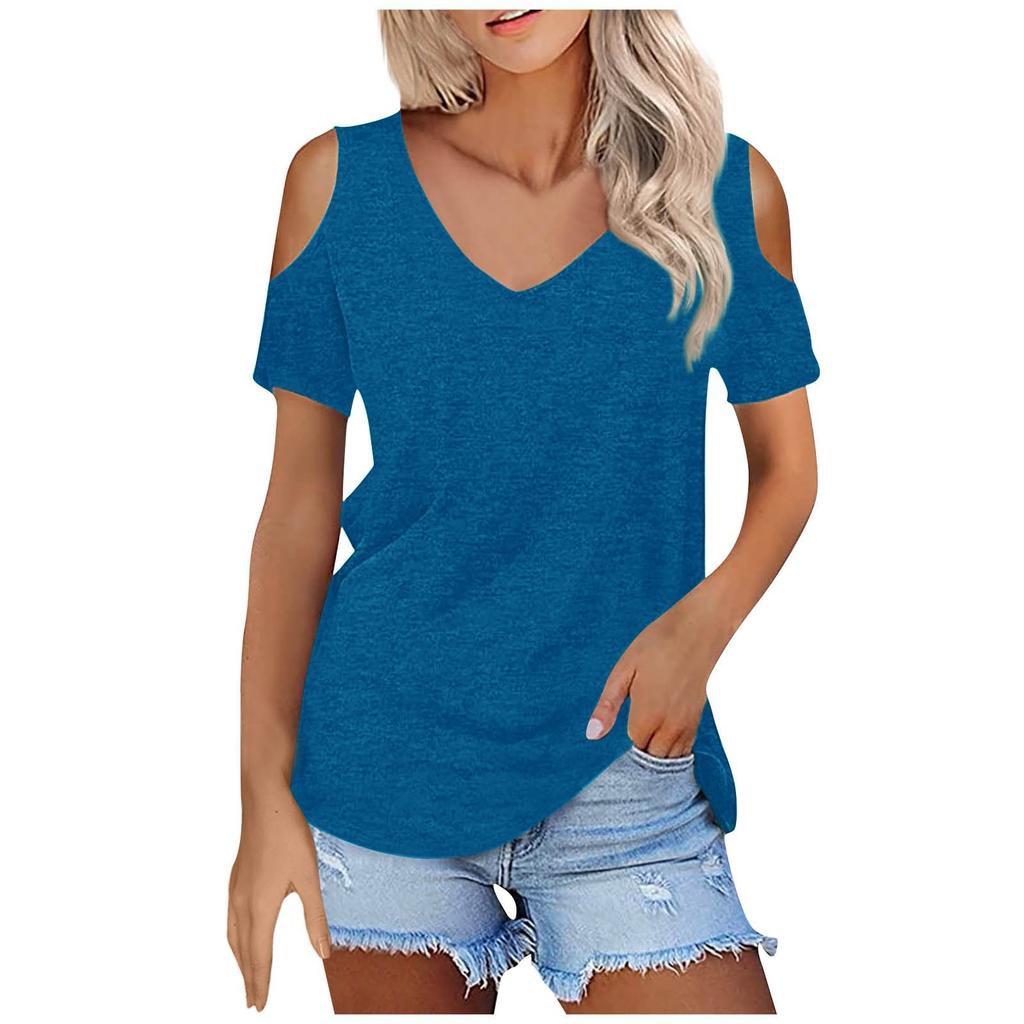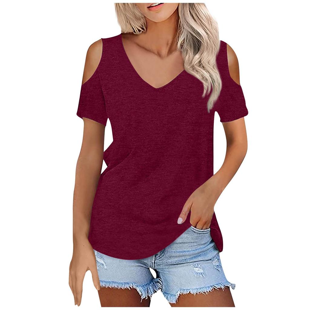 Женская летняя модная повседневная однотонная футболка без бретелек с v-образным вырезом и коротким рукавом, топ