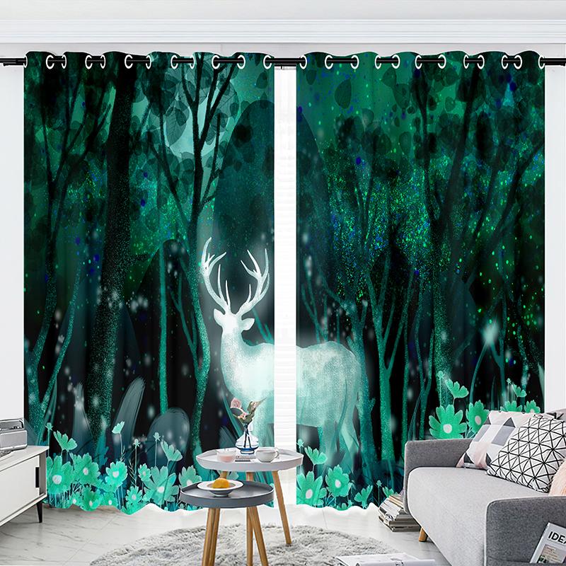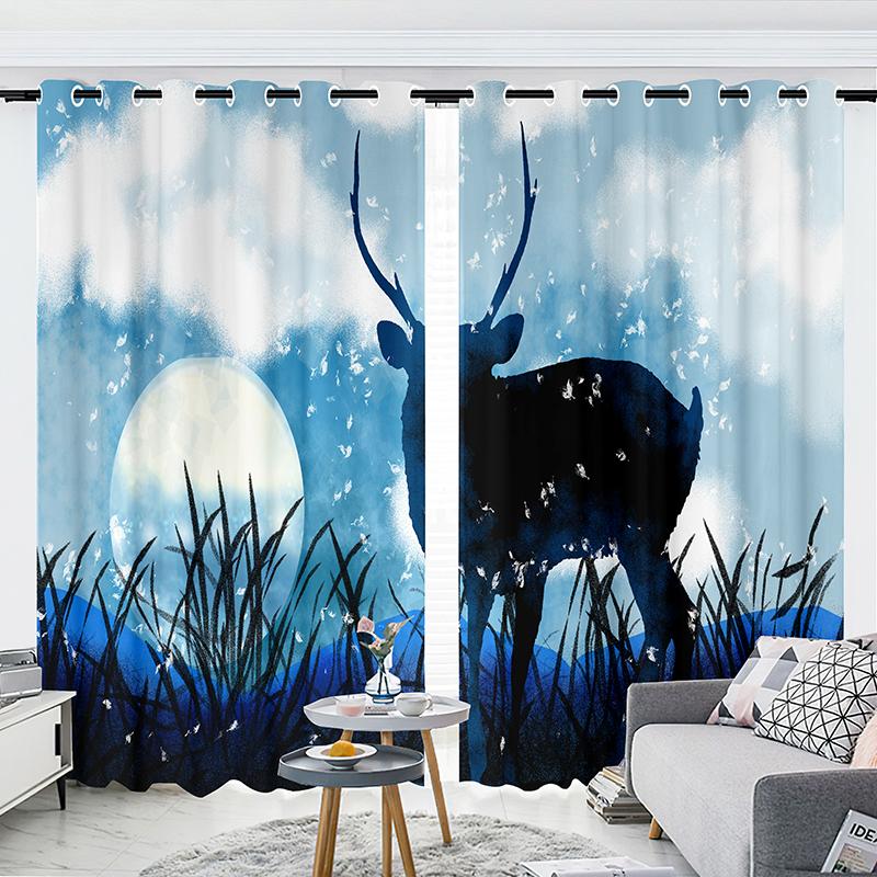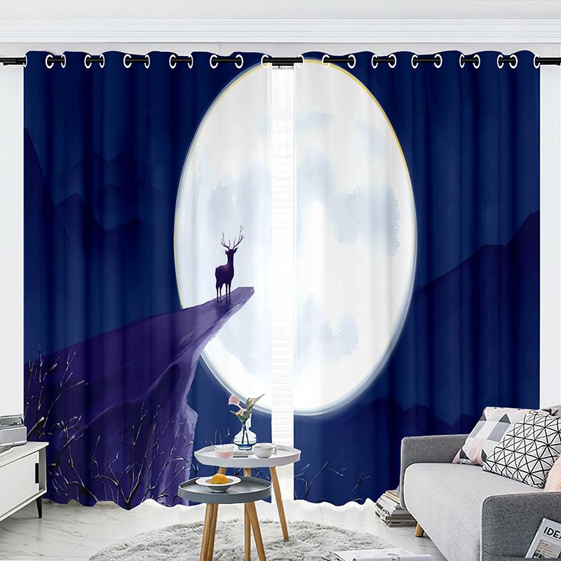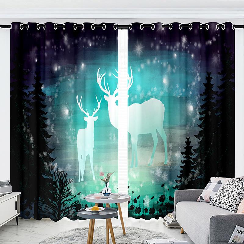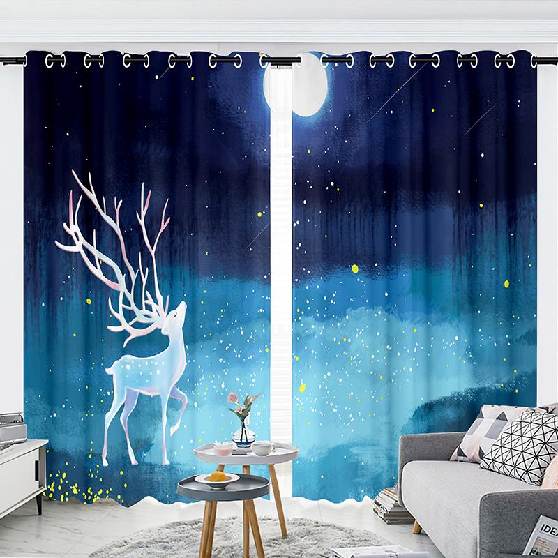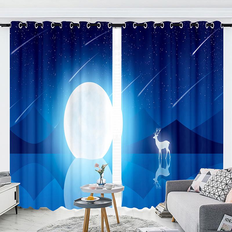 2-панельные шторы Шторы со звездным небом Шторы с изображением лося Шторы с изображением луны для спальни Гостиной Кухни Студии Оконные жалюзи
