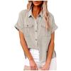 Женская повседневная модная хлопково-льняная рубашка с короткими рукавами и лацканами на пуговицах, топ