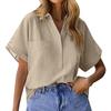 Женская новая однотонная рубашка-пуловер с короткими рукавами и двойными карманами, свободная хлопково-льняная рубашка — купить товар онлайн с бесплатной доставкой до всему миру!