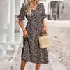 Модное и сексуальное женское элегантное платье с v-образным вырезом, летние платья с короткими рукавами