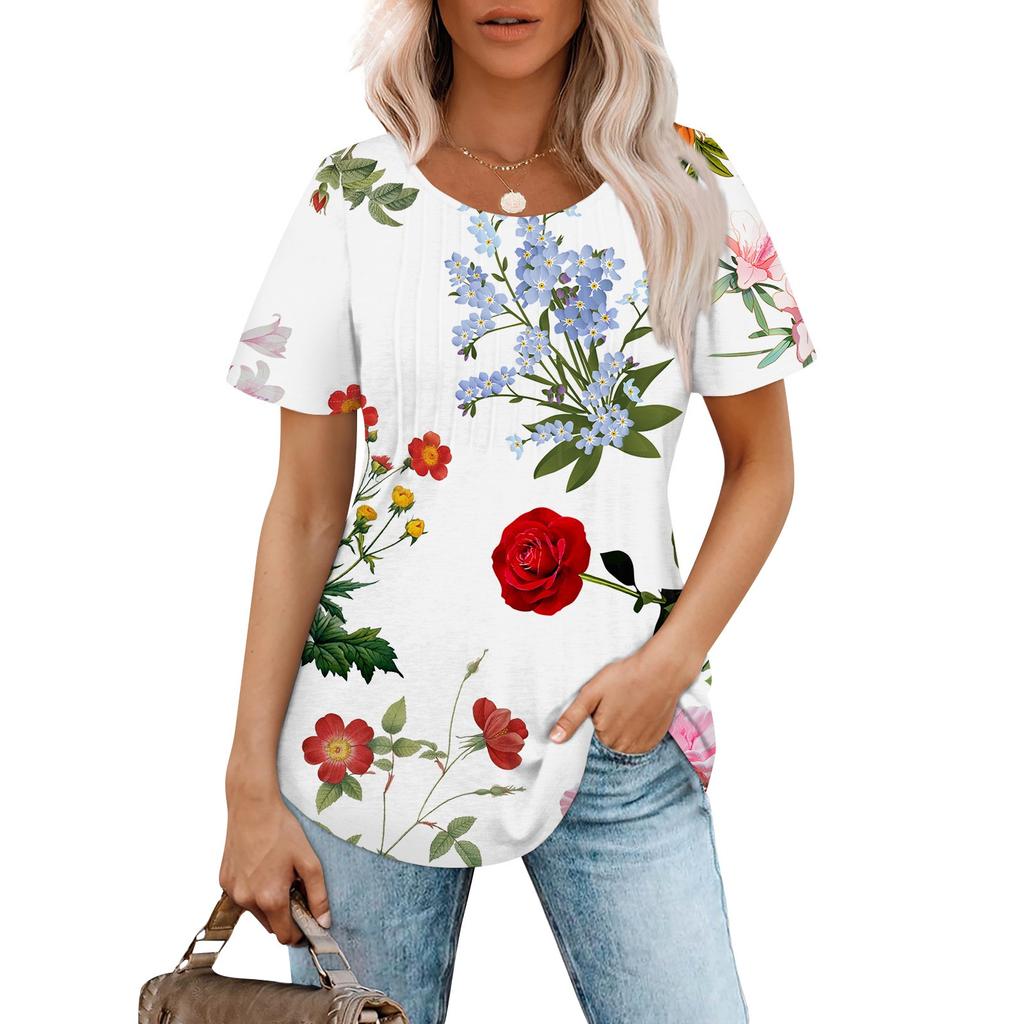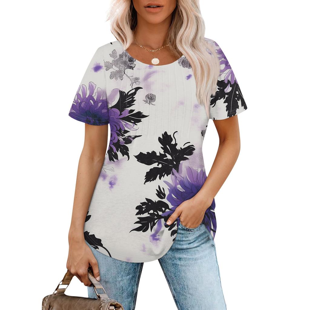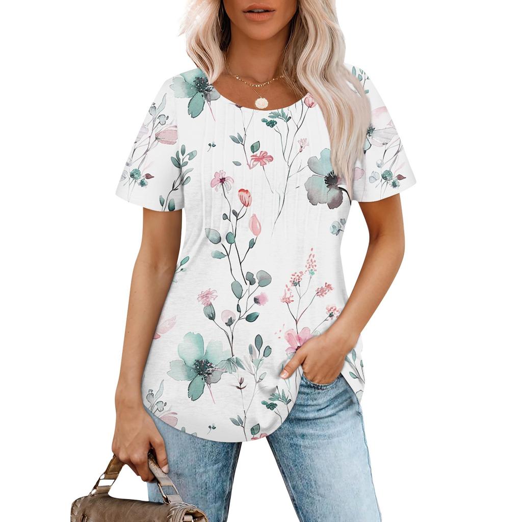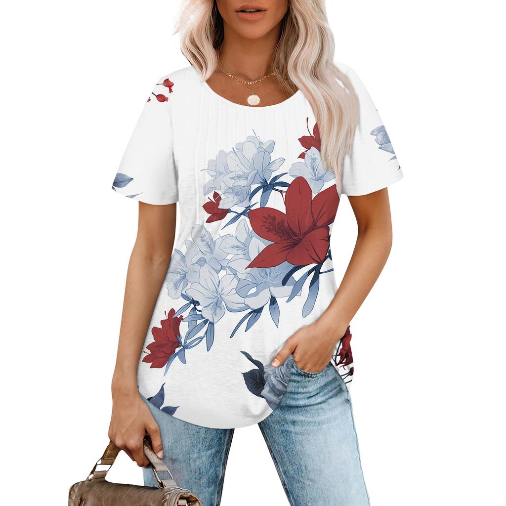 Женская модная повседневная плиссированная футболка с короткими рукавами и круглым вырезом с градиентным принтом