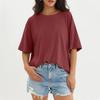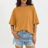 Женский модный повседневный однотонный топ с круглым вырезом и тремя рукавами с половиной рукавами