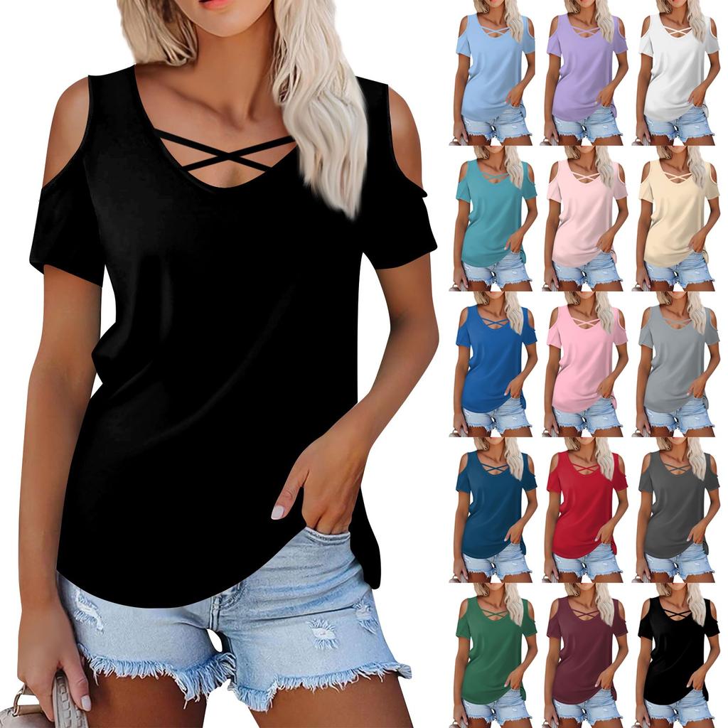 Женская летняя модная повседневная однотонная футболка с v-образным вырезом и коротким рукавом, топ