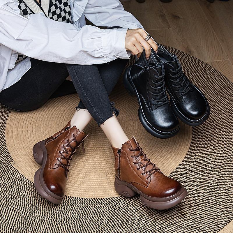 Короткие ботинки Martin Boots с толстой подошвой Кожаные женские туфли