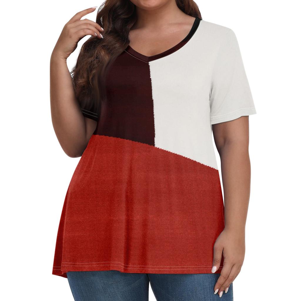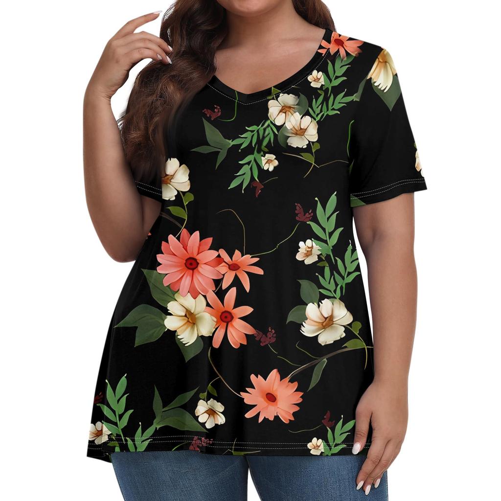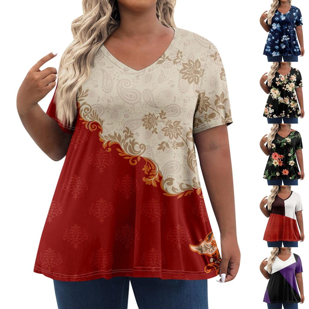Женские топы больших размеров, шорты с рукавами, рубашки с V-образным вырезом, повседневная одежда, топы с принтами