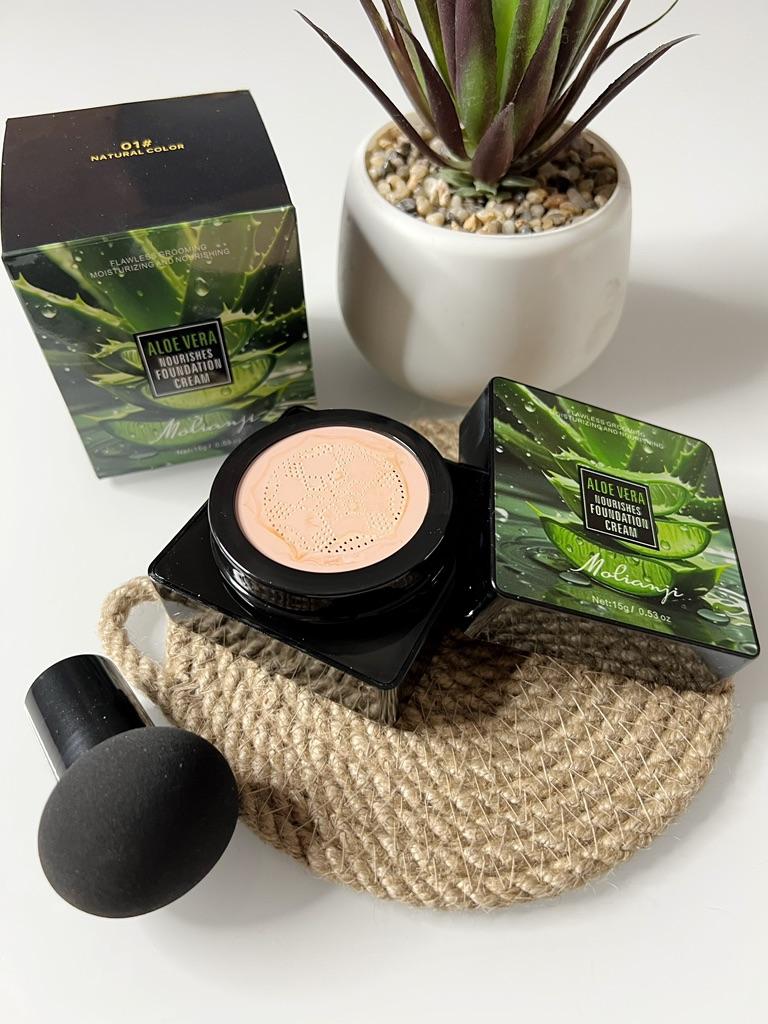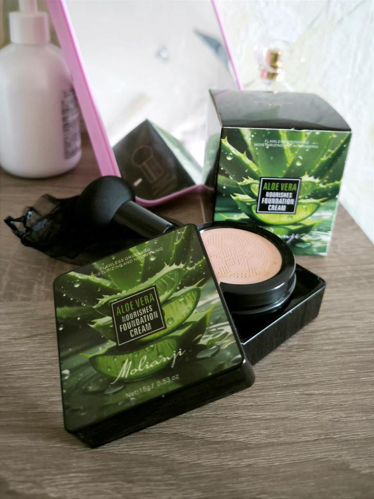 Кушон с экстрактом Алоэ Вера от магазина MLSMILE ❤️ Пришел в красивой фирменной коробке, на ней есть информация о составе продукта, указан срок годности. Наносится на очищенную кожу. Текстура крема нежная, легко распределяется, не забивает поры. Спонж перед использованием рекомендуется намочить водой. Если нужно слегка подровнять тон - достаточно нанести кушон одним тонким слоем. Для маскировки серьезных недостатков (акне, пигментных пятен) - наслаивать до желаемого результата. Товар от души рекомендую 👍 Оставайтесь красивыми и удачных покупок ❤️ Ваша Вика 🙂