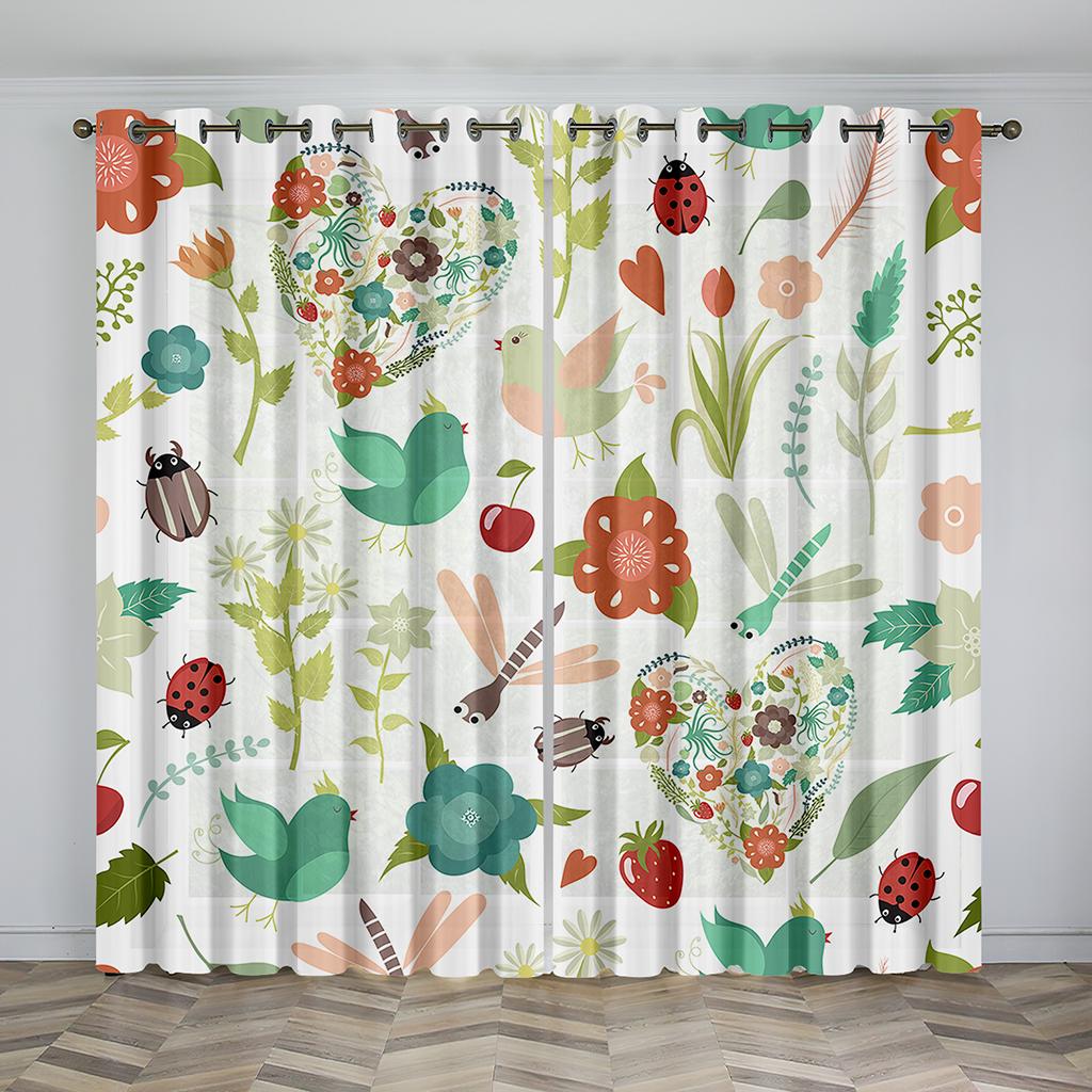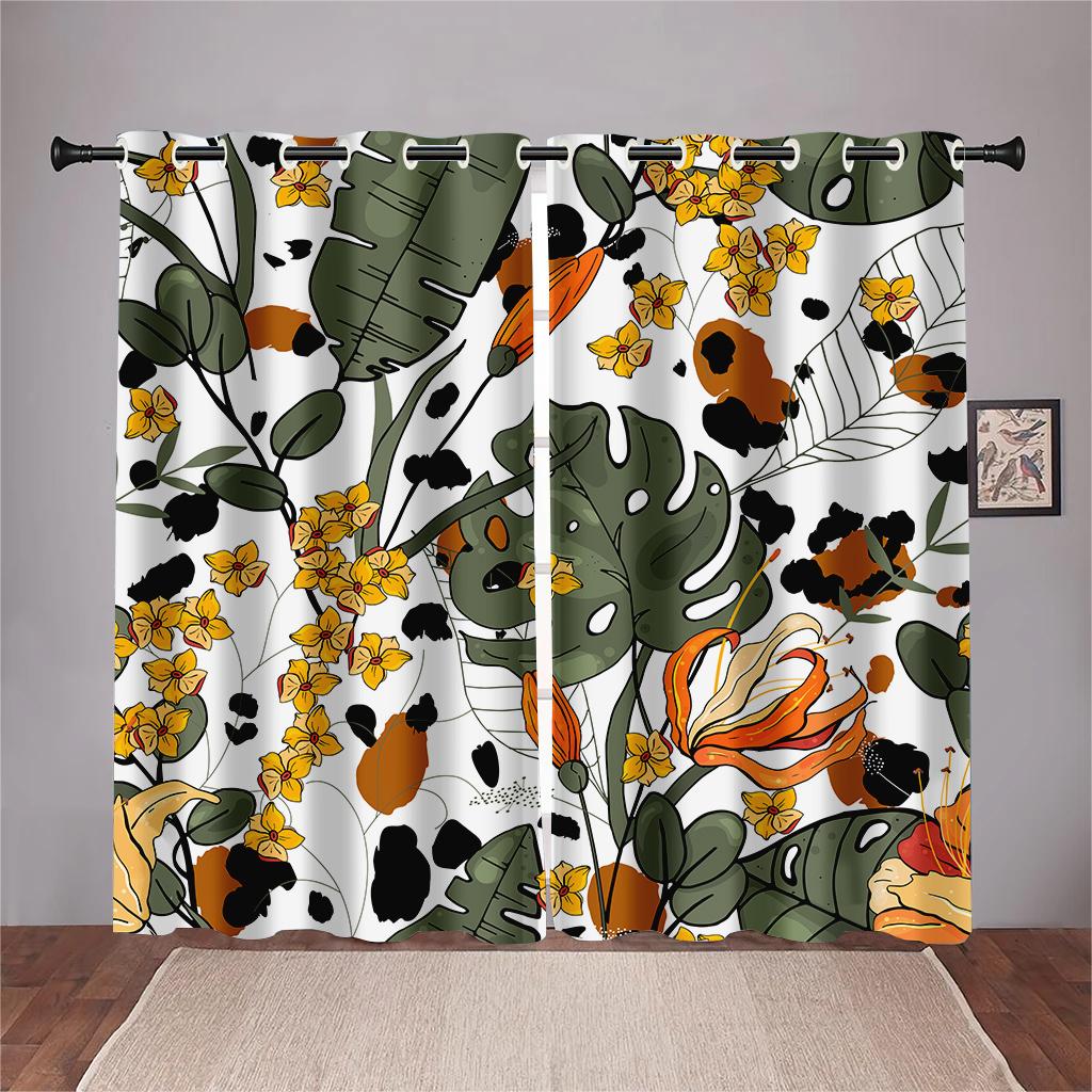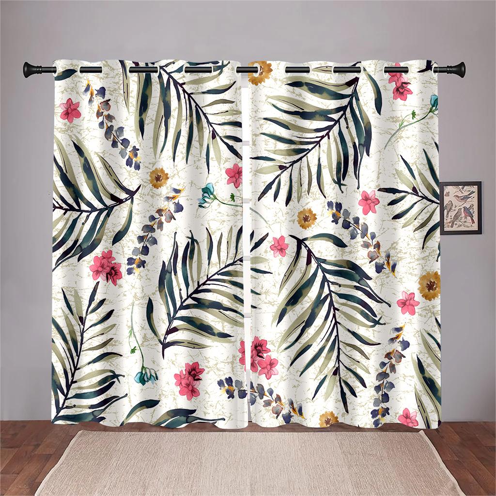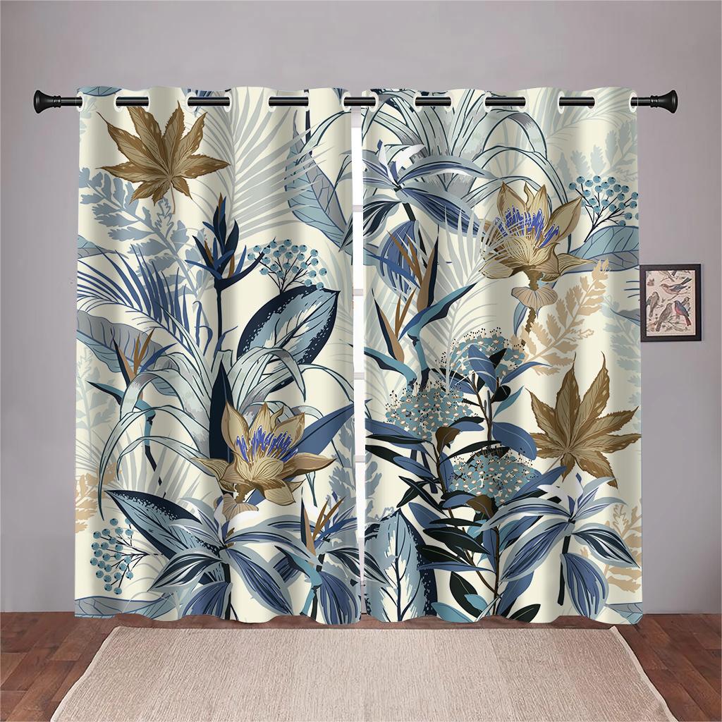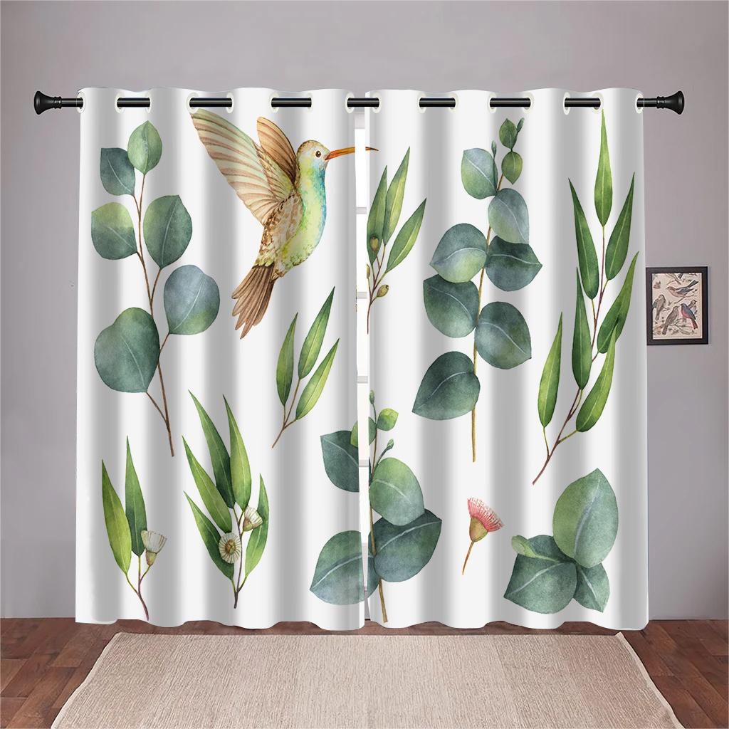 2-панельные шторы с принтом в виде птиц, тропических растений, листьев, для спальни, гостиной, жалюзи, оконные занавески, люверсы, верхняя планка, карманная драпировка