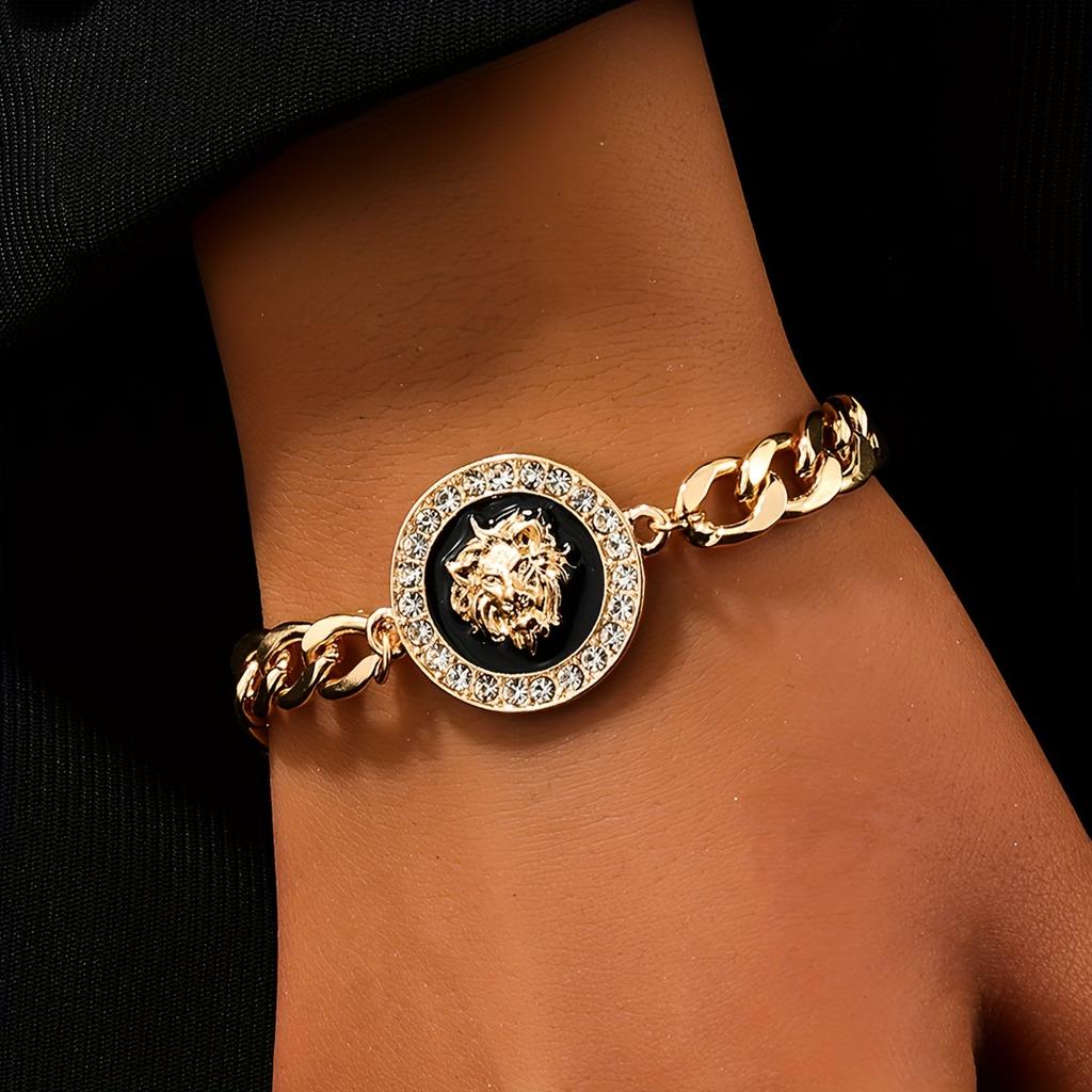 Роскошный кубинский браслет-цепочка с геометрической монетой в виде головы льва, стиль хип-хоп, простая элегантность, модные украшения для мужчин и женщин